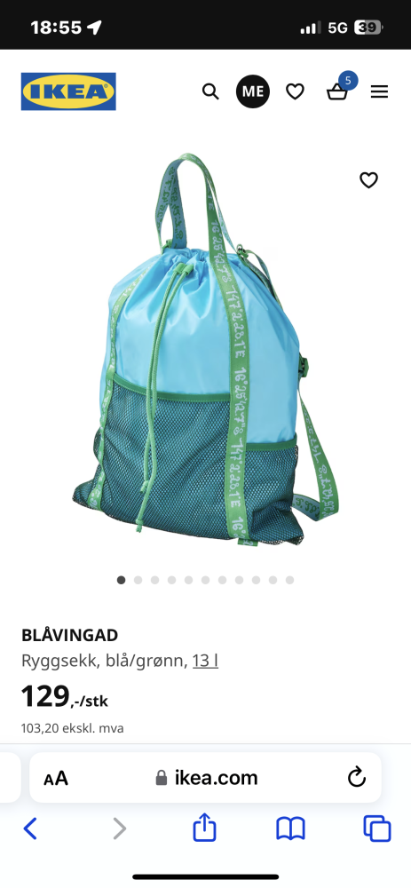 10. Pakkbare dagstursekker. Med skulderstropper. IKEA Fagning Artikkelnummer 305.545.22 Pris: 39kr Lett som en fjær, pakkes sammen til en tennisball. Ingen utvendige lommer eller polstring. Link: https://www.ikea.com/no/no/p/fagning-bag-sekk-bla-30554522/ IKEA Blåvingad Artikkelnummer 805.340.70 Pris: 129kr Denne er også veldig lett, og pakkes ned til en appelsinstørrelse. 3 utvendige meshlommer. Ingen polstringer. Link: https://www.ikea.com/no/no/p/blavingad-ryggsekk-bla-gronn-80534070/