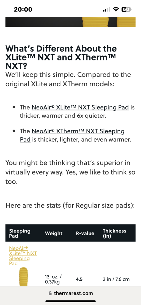 11. Ja, det er steindyrt. Alt for dyrt faktisk. Men jeg ser flere på Reddit, som har både nye og gamle, sier Xtherm høres likt ut i ny utgave. Mens Xlite er mye stillere. Det er også i tråd med markedsføringen til Thermarest, der de kun trekker fra Xlite som stillere: EDIT: Men etter å ha lest enda mer, leser jeg også om de som støtter din påstand om at også nye Xtherm er stillere. Folk blir visst ikke enige. (Ny rektangulær utgave får man for ca 2800kr* på Outnort.no, med 25% rabattkoden som ligger på forsiden. Fortsatt dyrt, men ikke like horribelt som det er til fullpris). *avhengig av størrelse