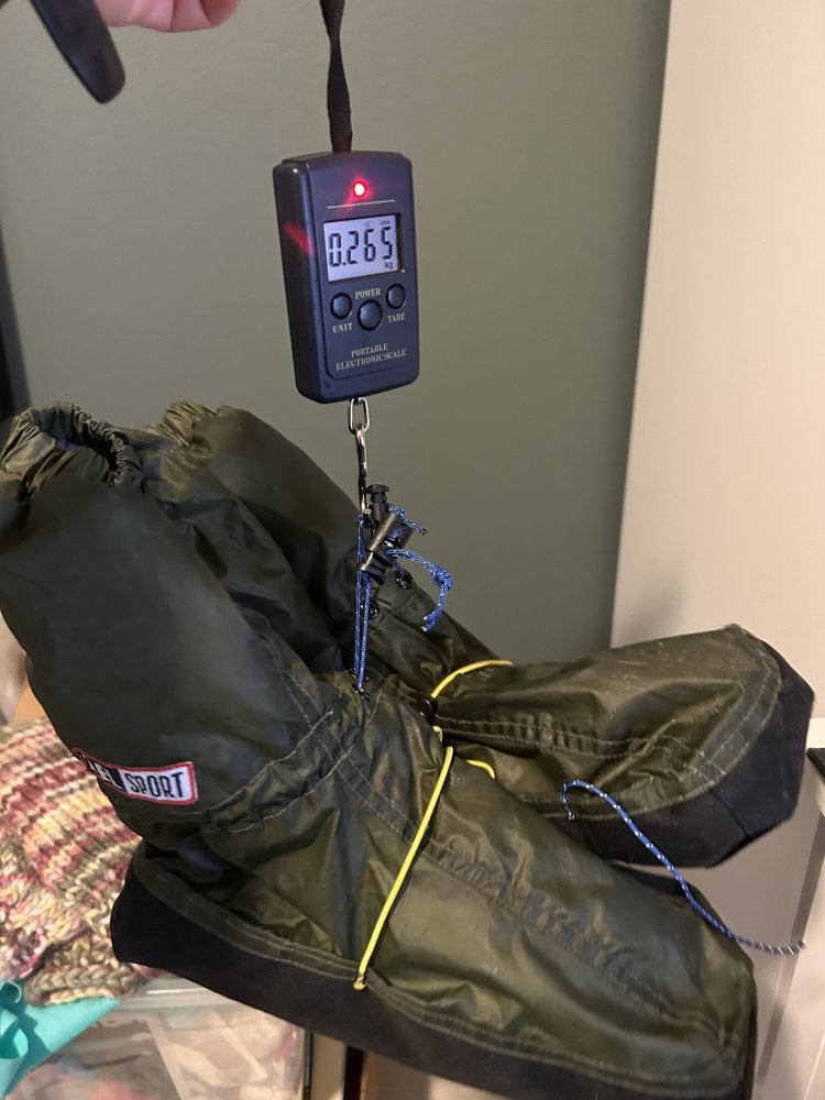 De kommer i 37-41. Skal du ha lettest og minst mulig finnes det alternativer som pakker og veier enda mindre. Skal du ha noe til å luffe rundt med ute kan du bruke Helsport Bivuakksko og tykke ullsokker eller noe nedi, eller enda bedre (og tyngre), skikkelig fotposer med skosåle. Det kommer jo an på vekt/volum og bruksområde. Helsport sine er ikke så veldig god å gå med. Men med strikken jeg har sydd på blir det en del bedre. Jeg strammer strikken, og trekker den over foten, så sitter de bra De virker tilsynelatende veldig gode. Tror du det er verdt en oppgradering? Fra mine bivuakksko? Stemmer vekten på 170gram for paret?