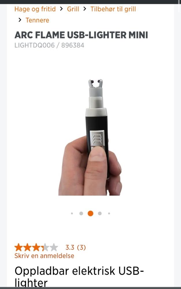 Tror jeg bare fortsetter med tennstål da, det virker alltid. Det er utrolig dumt at clas ohlson har sluttet med sin «mini peistenner». Denne var helt perfekt til å tenne forvarmingsvæsken med i alle slags brennere, veide lite, tok liten plass, og var refillbar. Men kunne selvsagt gå tom for gass og virke dårligere i streng kulde som alle andre lightere, så tennstål i backup er must: Ser power også har en meget liten USB lighter som virker bra. Men det er kun noen få butikker som har den inne: Når det gjelder tennstålet er Light my fire sine gode. Biltema er elendig, særlig på trange steder som i en brenner. Ungene sliter mye med å bruke tennstål til å tenne forvarmingsvæsken til brenneren, så det er ikke helt ideelt når de skal kokkelere.