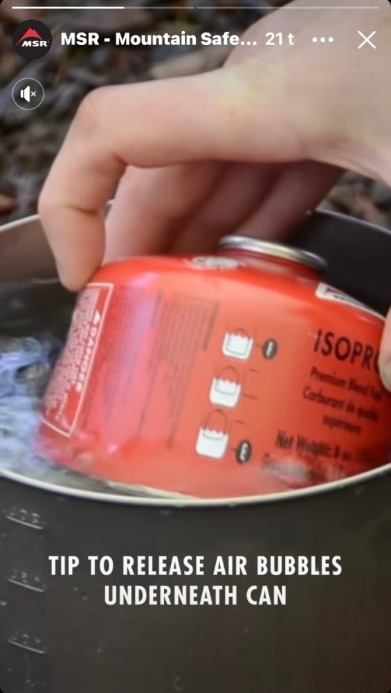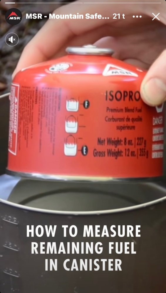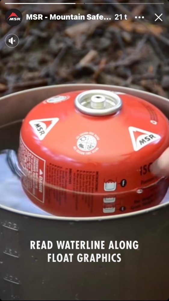 Mulig gammelt nytt for noen, men jeg fikk denne opp på facebooken i dag. Virker som en lur metode. Bruker man andre typer gassbokser kan man bruke en vekt, eller MSR boks som mal, og tegne streker inn på boksen før tur. Men det er vel egentlig ikke nødvendig med streker på boksen, det kan virke som at gassen er ca. på nivå med vannflaten.- 9 svar