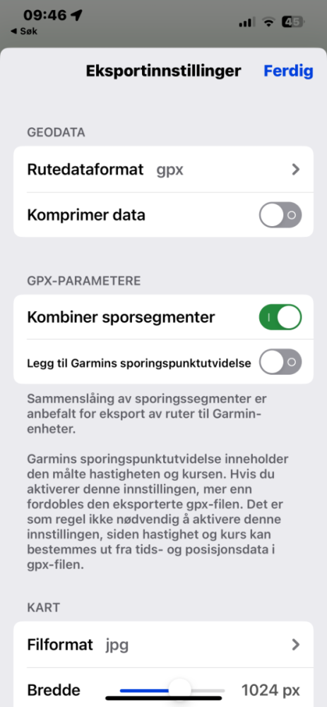 Jeg får ikke GPX filene fra appen Topo GPS til å virke i min Garmin GPSMAP67. Hvis jeg lager ett spor med kun to punkt virker det. Hvis jeg lager ett spor med flere punkt virker dette også hvis jeg ikke velger å kombinere punktene i GPX filen. Med det er ikke brukendes, ruten blir jo delt opp i en haug med korte spor da. Velger jeg å kombinere punktene i den eksporterte GPX filen ser alt såre vel ut når jeg importerer den til Garmin Explore appen på telefonen. Men det mislykkes å starte ruten på GPS enheten. Har prøvd å konvertere fra sport til rute i Garmin Explore apppen, men allikevel vil ikke enheten starte ruten/sporet. Går jeg inn på UT.no med telefonen, lagrer gpx sporet, og laster det inn i garmin explore appen, vises ruten øyeblikkelig i bibloteket på enheten og jeg kan starte ruten både fra telefon og enhet. Noen tips?