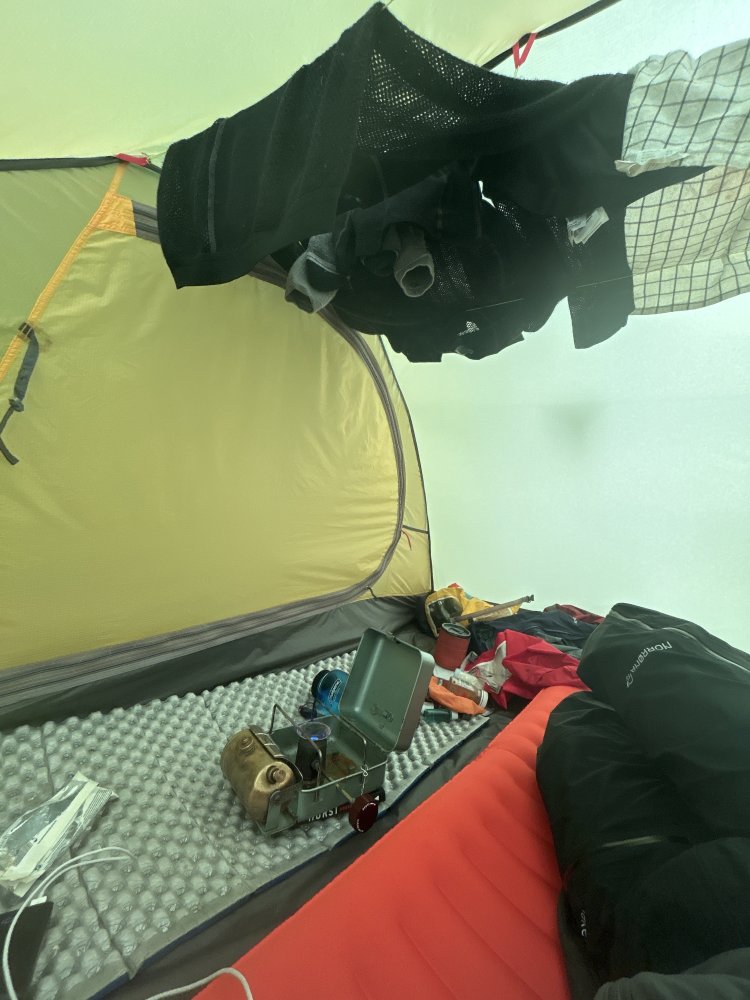 Ahh, søren. Jeg ligger på Nordsiden av Vilnesfjorden nå. Vi padlet fra Florø i dag tidlig, men nå ble været og vinden rett og slett så heftig at vi ikke kommer oss over fjorden før i morgen. Om skulderen til padlekompis er bra igjen i morgen, håper vi å kunne ta en lang dag og krysse både Vilnesfjorden og Sognefjorden i morgen. Vinden skal roe seg litt. Det blir en veldig lang etappe i motviden, men i overmorgen skal vinden øke på igjen. I mellomtiden ser det slik ut i telt-taket, mens jeg venter på at brenneren skal bli ledig Men takk allikevel- 4 svar