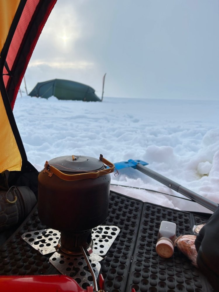 Ingenting å beklage Jeg mener smeltet snø. Enten nysnø eller den snøen du finner (gammel snø). Det er enklere å grave litt ned og finne grov snø enn nysnøen på toppen som er mye luft. Jeg bruker å smelte snø til frokost og kvelds. Fyller da kjelen med snø, og putter oppi snøblokker etterhvert som det blir mer plass. Når det er smeltet fyller jeg opp drikkeflaskene mine, det trenger ikke å koke hvis man ikke skal bruke drikkeflasken som varmeflaske eller det er sprengkaldt og man må hindre at vannflaskene fryser om natten. Man bruker unødvendig mye drivstoff på å koke snø man bare trenger å smelte, og kaffevannet er nok å varme opp til litt over drikketemperatur. Så etterfyller jeg kjelen med mer snø til jeg har ca en liter igjen som kokes. Den literen er nok til real turmat, en solid kopp kaffe eller to, og en skvett igjen på kjelen som brukes til å skylle skål/kopp/skje etter måltidet. Enkelt, kjapt og greit. Jeg bruker en 1,8 liters GSI kaffekjele, synes den er helt topp. Enkel og trygg å helle av. Drikkeflaskene har jeg termotrekk på, eller ligger de i soveposen om jeg ikke vil at vannet skal fryse om natten. Evt. vann til overs blir liggende i kaffekjelen til neste morgen, selv om det kanskje fryser (enklere enn å etterfylle med snø). I helgen på jostedalsbreen brukte jeg ca 1,5 dl bensin i døgnet til smelting.