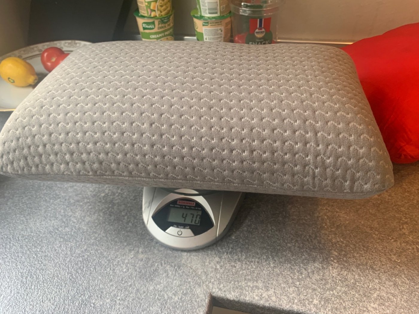 Memoryfoam reiseputen til jysk er i ganske lignende materiale. 470 gram med originaltrekket. Man kan spare 70 gram på å sy ett nytt av tynt stoff. Så kan puten klippes ned ca 1/4 del og fortsatt være rikelig stor. Da er den ca 300 gram. Tenker det også kanskje kan være ett bra alternativ til tempur, om den føles like bra, og mye billigere.