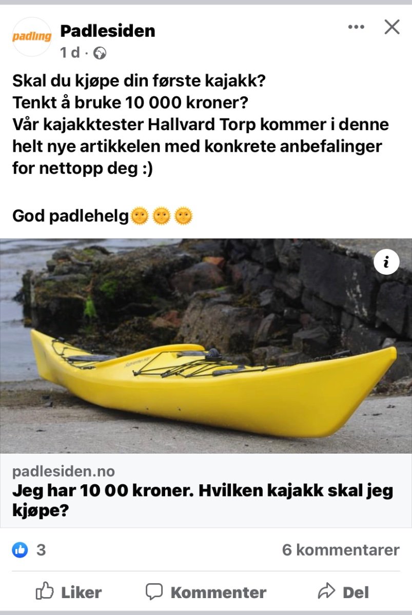 Norse kajakkene er veldig lette. Du får ekstremt mye kajakk for pengene, jeg padlet noen år i Freyja. De aller første veier litt mer enn senere produksjon (de fikk ny riveduk på fabrikken som suger opp mer lim). Men godt under 25 (23?) kilo for kjøpekajakk er bra, inkludert sete, ror, og alt som følger med Seabird Expedition er en ok kajakk. Men jeg opplever den som tungdreven og høy egenvekt. Enda lettere og stivere får du om du bygger en egen i strip-plank. Men det er en god del arbeid og krever plass å stå.