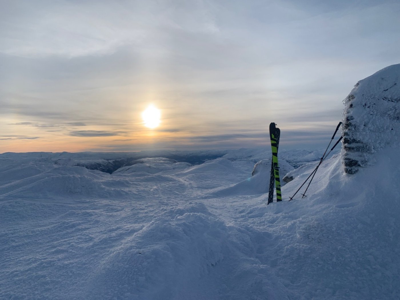 Hva slags terreng og område er det snakk om? Skal jeg gå langt i vestlandsk fjellterreng hvor det er mye opp og ned, har jeg gått tilnærmet helt over til å bruke superlett randoutstyr med mohair feller. Mye bedre å gå oppover med enn fjellski, mye bedre enn fjellski nedover, jeg føler meg alltid trygg, men man går litt saktere på flatene (med mindre det er dyp snø). Fjellski bruker jeg nå bare på hardangervidda, i skarvheimen og i oppkjørt løype. Det skal være mye flatt og slake bakker før jeg tar fram fjellskiene. Hadde telemarkbindinger på Åsnes Falketind noen år. Det ble en slags mellomting, men veide mye mer enn lett randoutstyr og var dårligere til alt. —— Når jeg kommer over bratte områder på dårlig føre med fjellski renner jeg ned på skrått, stopper og snur, renner andre retningen på skrott, stopper og snur, og fortsetter sånn nedover. Er det gjennomslagsføre bruker jeg ofte trynet til å stoppe med - får du ørene under skarelaget så er det en effektiv måte å stoppe på 👍 Stivt drag er fint å renne nedover med, mens taudrag er noe dritt, synes jeg.