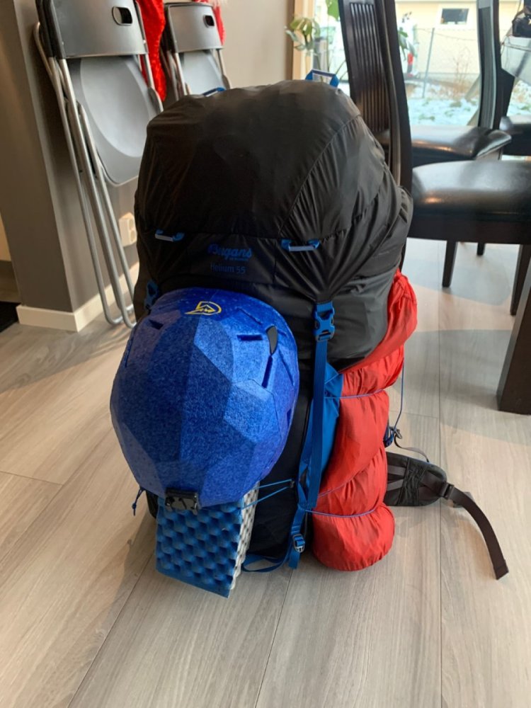 Fornøyd med sluttvekt på 11,97 kilo, med vinterpose og skikkelig underlag. - Bergans Helium - Mat for i kveld og ut dagen i morgen - Hjelm, skarejern, spade, god hodelykt (petzl nao) - Skallvotter (reserve) - repkit og førstehjelp beregnet på vinter-/skiturer - Camelback med isolasjontrekk og isolert slange (dobler som varmeelement i soveposen. - Kaffekopp, skål til havregrøt, 1 liters kjele til snøsmelting, MSR XGK II med trillium basen og 3,5 dl bensin, vindskjerm, tennstål, røpdsprit. - Toalettsaker (nattflaske, tannpuss og toalettpapir). - Vinterpose, alaska Cumulus, t-comf -17 1650g - Exped synmat 3dMW 880g, og ett nedklipper thermarest z-lite - Exped oppblåsbar pute: 65 gram. - Dunjakke 450grams. - Nattøy: Tykt fleece baselayer, strikkete tøfler («luffer») - Hilleberg Unna med innertelt og 4 snøplugger. Snøpluggene er med siden jeg skal gå fra teltet. 2,2 kilo sammenlagt. - Vindsekk. Den har jeg også med siden jeg skal gå fra teltet i morgen (det står igjen ved camp). - Nødpeilesender 150gram. - Sekken er avbildet med 2 liter vann i camelbacken, og da er totaltvekten 13,97 kilo inklusiv vannet. Mulig jeg bytter ut den oppblåsbare puten med en hjemmesydd fiberpute. Det blir 180 gram ekstra. Kommer til å gåmmed lette randoski, 1kilo per fot. Pluss støvler på 1 kilo og lette mohairfeller. Med tanke på fjellets forhold vurderer jeg å ta med stegjern, Petzl Irvis Hybrid. Da blir det 300 gram til, om jeg trekker fra for skarejern.- 69 svar