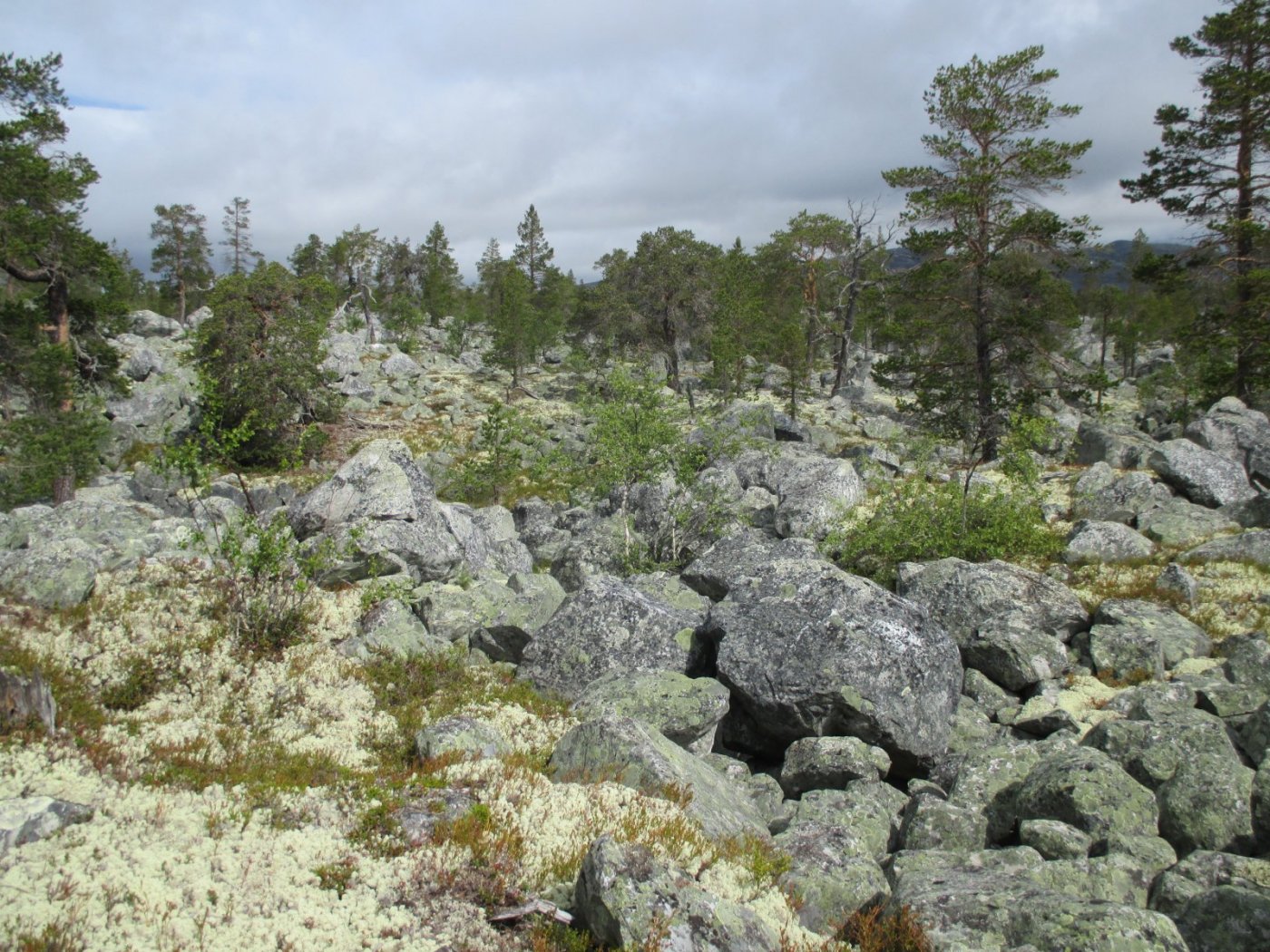Litt flere bilder. 1.Blokkmark øst for Revsjøen. 2. Teltplass ved Røa 3. En gapahuk laget en eller annen gang, ved Abbortjønn. 4. Før Svukkuriset. 5. Røa, ved teltplassen.