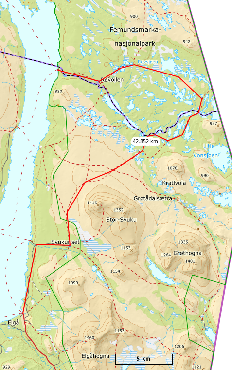 Kjørte opp den 19. juni. Overnattet på campingplass første natten. 20 juni: Opp med MS Femunden til Røa. Deretter gange inn til Langeggtjønnan. Etterhver begynte det å blåse kraftig og teltet (Ringstind 2) fikk seg en trøkk. Den fra før skadede stanga bøyde seg enda mer. Nå må den snart byttes ut. Minn meg på det om jeg glemmer det..… Pakningen til brennerpumpa viste seg forøvrig å være sprukket og trykksetting ble umulig, heldigvis hadde jeg med korken til flaska og den pakningen der er jo av samme type, så jeg tok bare å byttet over. Dette bør man selvsagt sjekke FØR avreise, men man gidder liksom ikke for det har aldri skjedd før. Flinkiser hadde nok sjekket og det er bra for flinkisene. Gratulerer til flinkisene! 👏 21 juni: Blir værende på samme sted denne dagen. Da jeg sjekket sniksnøret etter at teltet hadde blitt blåst flatt, så satt det på en ørret på ca. 250 g. Den stekes samme kveld. Jeg sier som Per Fugelli: Nam, nam! 22 juni: Fortsatt kraftig vind. T-stien går i starten på toppen av en rygg og her blir man nesten blåst av denne. Går inn mot Revsjøen. Roter med orienteringen og havner ved båthuset ved vestbredden. GPSen viser 900 meter i lengderetningen, men dette bygget ligger da på 700? Jeg dropper nå å stole på GPS og går over til kart og kompass igjen. Tråkler meg opp mot Styggsjøkoia, som jeg ikke finner. Etterhvert må jeg bare finne en leir og ender opp ved et vann som står i.f.m Revsjøen. Det blåser fortsatt kraftig, men jeg får etterhvert kontroll på oppsettingen. Glemmer til og med å se etter bjørn. Fisker ikke her av flere grunner: Det blåste nemlig kraftig pålandsvind, og også fra vest. Var også litt tung i kroppen. 23 juni: Denne dagen går jeg mot T-stien som kommer fra Sverige. Det tar ca. to timer før jeg er ved denne og kan se Rogen i det fjerne. Nå blir det en transportetappe der tankevirksomheten kan kobles ut, noe jeg ikke har noe i mot. Bjørnefrykten har vært sterk det siste døgnet, hvor jeg knapt hadde mobildekning og følte meg helt isolert ute i ødemarka. Uten våpen, uten hund og helt alene er man ikke høy i hatten. Nasjonalparkbevæpning må jo være bra? Monsen har jo alltid pumpehagle med slugs? Hvor er vår 2. amendment? Jeg sov likevel ganske godt. Ser folk ved en koie (M…..et eller annet, husker ikke navnet) langs stien og deretter to andre telt nærmere Kløfthåtjønnan. Jeg er nå så sliten at jeg bare må få opp teltet og det blir ved et tjern/myrhull der en bekk renner inn. Kummerlig. 24 juni: Kort etappe på 1 kilometer inn til Røa-elven. Fin teltplass og jeg ser også tre fiskere ved Abbortjenn da jeg går forbi. DAB-radioen (Sony X...) får ikke inn signaler i teltet her ved Røa uansett vinkel på antenna. Eneste mulighet er å gå opp på nærmeste topp/rygg, og da får jeg tross alt hørt Dagsrevyen på Alltid nyheter. Omleggingen er uansett bare noe tull. De som lyttet til radio via luftsignalene var fornøyde med både lyd og dekning, nå er det en masse problemer og man må henge rundt oppe på en åsrygg for å bli oppdatert på siste nytt. Den gruppen som virkelig trengte radiodekning via radiobølger og ikke hadde andre alternativer, har blitt vektet ned og ignorert. Fisker i Grislehåen. Bruker mark og dobbe der snøret løper fritt igjennom dobba. Får på en ørret på 800 gram. Knallrød og fin i kjøttet. Da har jeg fått nok og slutter å fiske for ikke å legge meg ut med høyere makter. 25 juni: Fisker i Abbortjønn og får en 250 grams ørret. Slapper av og restituerer meg etter to dager med henholdsvis 7 og 10 km gåing I tungt terreng. Prøver å fiske i Røa sent på kvelden og lar en dobbe med mark-fortom drive nedover. En ørret som så helt lik ut som den på 800g er på, men slår seg av inne ved bredden. Arrgh... 26 juni: Marsjen til Elgå (25+ effektive km) starter. Jeg er godt restituert og har rehydrert, sekken veier nå rundt 16 kg. Det går greit opp mot Krokåthåen og jeg passerer en hytte som ikke er avmerket på kartet (2008). Det må være der de fire unggutta med fluestenger jeg møtte bodde. De var uforskammet opplagte og fulle av pågangsmot, men det er også jeg - i hvert fall foreløpig....Jeg fyller vann i bekken der og ser at noen på andre siden av et vann følger nøye med. (Det ligger plastkasser i bekken med ting som tydeligvis behøver kjøling, og vi vet alle hva som behøver kjøling). Oasen åpenbarer seg snart som et Soria Moria i det fjerne og jeg går på. Tilslutt er jeg der, men det er tilsynelatende ikke noe vann her! Jo, det er det likevel, takk Gud. Jeg måtte bare gå lenger opp. En oase uten vann? ; det skulle tatt seg ut. Men det er helt klart tørre forhold for tiden. Jeg passerer over det høyeste punktet ved Falkfangarhøgda og spiser litt havregryn blandet med tørrmelk, vann og sukker = velling. Nå blir terrenget lettere og det er rene autostradaen mot Svukkuriset. Det er nok her planene om å gå helt inn til Elgå faller på plass - jeg har rett og slett masse energi. Grusveien på 9 km ned til Revlingen og videre mot Elgå blir likevel en hard påkjenning. Det brenner under fotbladene og jeg banner og steiker hver gang en nye endeløs sving trer fram. Men endelig er det over, og jeg ser at turiststien som krysser veien vil føre meg rett til parkeringen ved fjellstua. Jeg går med merkelig ganglag over plenen der og er fremme ved bilen. Butikken i Elgå er stengt ved denne tiden, så det blir Joker Drevsjø som stenger klokka 20:00 i steden. Det må sies at det var en vellykket tur. Stor fisk og også nok fisk til å få det ekstra i matveien, og jeg overrasket meg selv med en siste langmarsj.