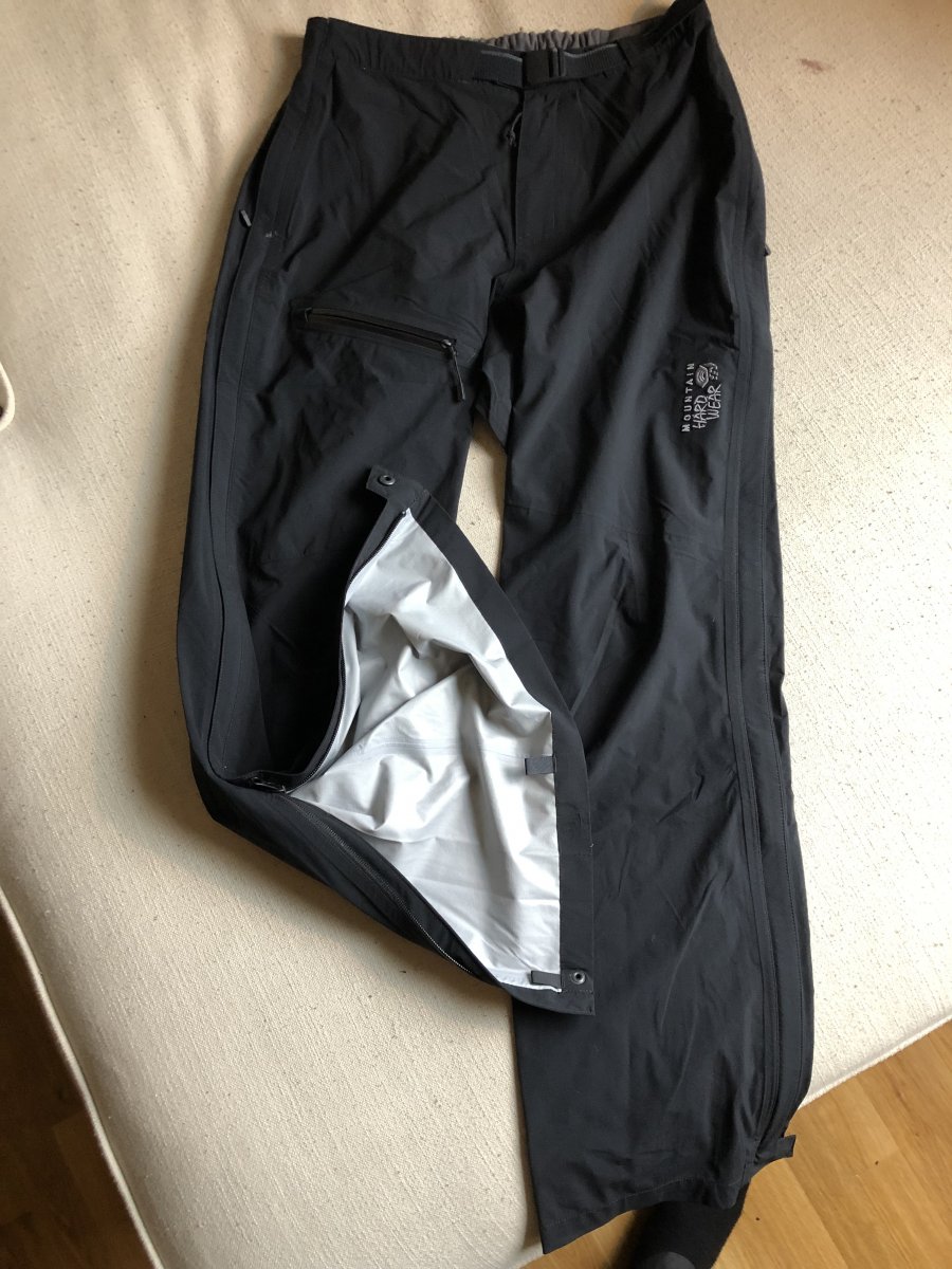 (Hvorfor i alle dager er det en knapp som fjerner alt man har skrevet? Når kommer denne funksjonen noen gang i bruk utenom når man ikke mener å trykke på den...) "Mountain Hardwear - Men’s Stretch Ozonic Pant" veier 270 gram (medium reg), har glidelås langs hele siden, borrelås i topp og bunn me glidelåsene, kan lufte i topp og bunn, er et stretchy Goretex materiale, buksesmekk, integrert beltespenne og har feste i anklene til sko. Den er litt stor på meg, men jeg er overnaturlig tynn i beina. Utpå en turbukse er den mer passelig:)