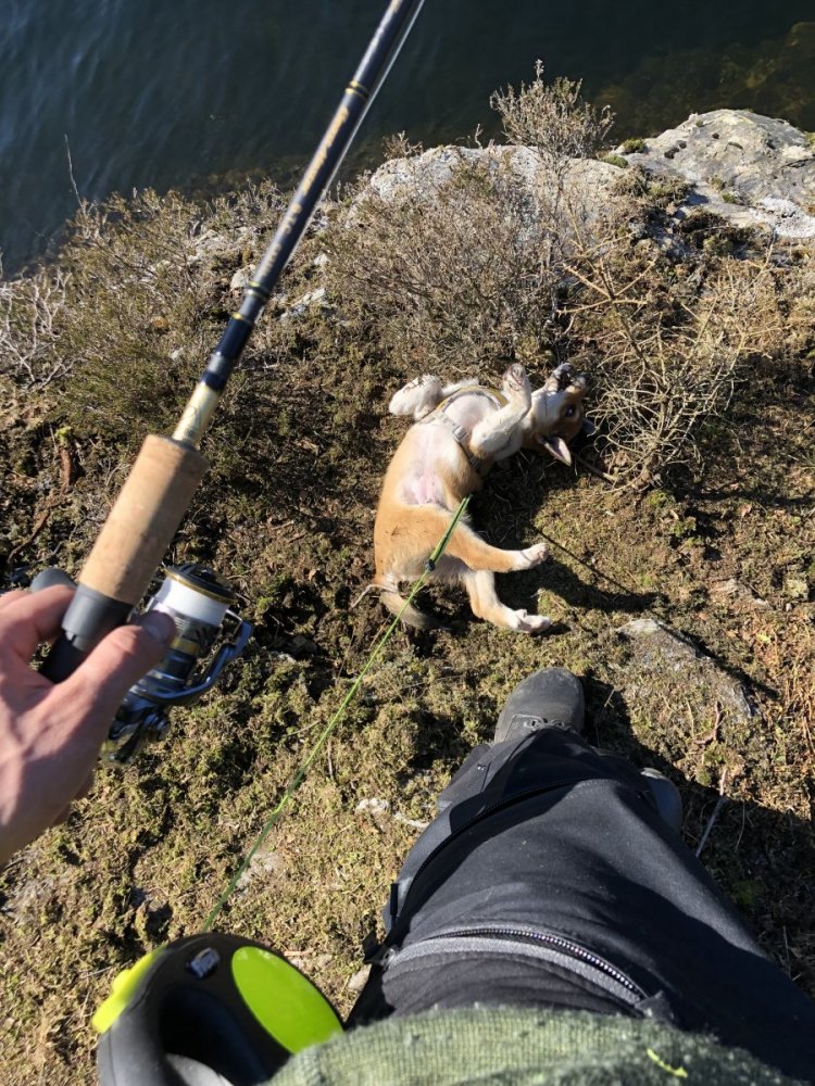 Trasket rundt omkring på Tysvær, Nedstrand. På stier, utfor stier, noen flotte utsikter og en del fisking. Nydelig vær og stemning! Valpen, Ivar, poserer dritbra på bildet💩 Operasjon redd fiskekroken Ivar soler seg mens vi fisker. lånte bort Unna teltet til han ene turkameraten mens jeg sov i Nallo 3