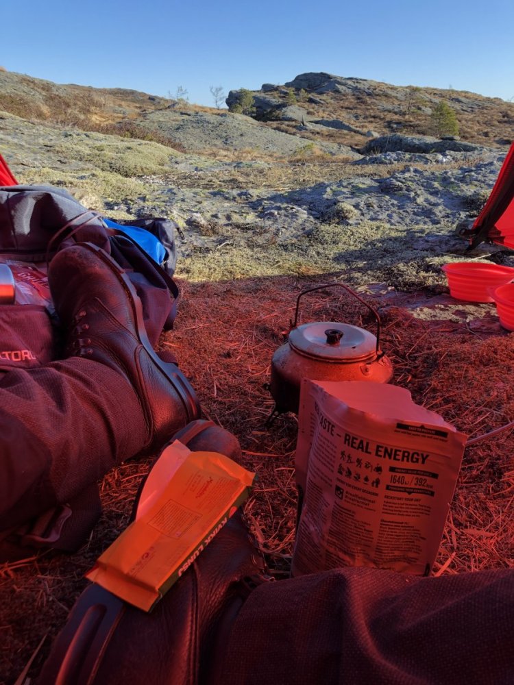 De fleste koker vannet sitt i en liten potte eller kaffekjele på rundt literen. Kan vel spise rett fra denne. Slipper en del gram søppel man må dra med seg også da! Så sant at maten holder seg varm de minuttene man vente på at maten trekker og gjør seg ferdig (for å slippe å ha gassbrenneren på unødig lenge). Dette har jeg ikke forsket på.