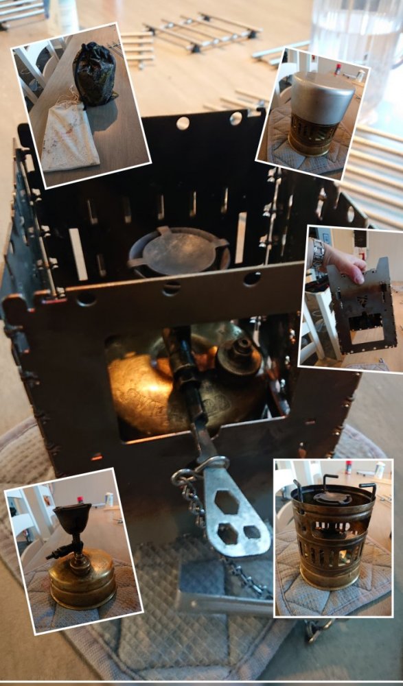 22. Da har æ modifisert Buschbox XL kvistbrenner så Svea123 primus passe nedi. Blir spennende å teste. Bedre vindskydd og større kokeflate. Grillrist til kvistbrenneren har æ bestilt. Neste blir større kopp til Svea. Har så vidt testa kombinasjonen, men var vanskelig da justering primus var vanskelig. Tror dette funker gull, alene på tur.
