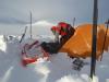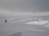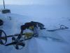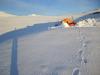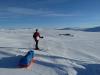 Og her kommer oppsummeringen etter en fi(n)sefin tur! DAG 1 Planen var egentlig å ta toget til Hallingskeid og gå mot Geilo. Men på grunn av NGIs skredfarevarsel, bestemte vi oss for å starte turen fra Finse. Vi hoppet av toget i 16-tiden søndag. Temperaturen var minus 2 og et lett snødrev krydret luften. Jeg spurte en av de hotellansatte om noen hadde gått til Krækkja i det siste. "-Ja, det gikk noen karar i forrige uke", sa han. Han lo tørt da jeg spurte om de hadde gitt noen livstegn fra seg siden... Solen var sakte på vei ned over fjellene, og vi spente på oss pulkene og gikk til andre siden av Finsevannet hvor vi slo opp teltet. Førsteinntrykket av pulk som bagasjebærer var meget godt. "Pulk er det nye sekk", ble det sagt. Utover kvelden tiltok vinden og temperaturen krøp nedover. Vi fyrte opp multifuel'en, smeltet snø i en 4,5 liters leirkjele fra Primus, og fikk i oss en DryTech. Norske fjelltopper beskuet til smaken av Chilli Con Carne. Og en iskald gin tonic for å innvie turen. Blir ikke mer nasjonalromantisk enn det. DAG 2 Natten hadde ofret oss lite søvn. Teltduken hadde duret hardt i vinden hele natten og forteltet var pakket med en halvmeter snø. Snødekkede pulker. Vintersoveposene hadde ikke klart å ta helt unna for kulden, følte vi, men vi klarte å grave frem primusen og begynte snøsmelting til en varm frokost. Liten til stiv kuling ute. Hm... Vi vurderte om det var tilrådelig å gå, men rundt klokken 12 pakket vi alt og forlot et firkantet teltavtrykk på Finsevannet. Satte ut kompasskurs og fulgte med på GPSen samtidig. Det var ingen klar eller stikket løype, men snart fant vi åtte riller i snøen som vi fant ut måtte være Paris-pulkene til de "to karene" som hadde gått ruten en uke før oss. Vi fulgte kartets vinterrute opp mot Hansbuflata. Vinden var til tider ganske sterk og snøen pisket fra vest. Hetten på. Da vi kom til Brattefonnvatnet ble vi usikre: Kartet på GPSen anga ikke vannene i området(!). Kartet var hentet fra frikart.no og vi brukte en nyere Garmin - Colorado 300. Den anga noen hvite områder i områdene med vannet, men vi stod foran et vann - ikke en isbre. Og det var vanskelig å se om det hvite området på GPSen liknet på landskapet vi så foran oss. Etter dette la vi bort GPSen og holdt oss til kartet. Været ble stadig dårligere, og da klokken nærmet seg fire og lyset var så flatt at vi ikke så forskjell på flatmark og skrent, slo vi leir på nordsiden av Finnsbergvatnet. Sikten var ikke på mer enn 20 meter, så vi ante ikke hvordan området så ut. DAG 3 En ny natt med kulde. Og sterk vind. Uff. Denne natten hadde vi kledd enda mer på oss, men minus 15 og kraftig vind, som også snek seg inn fra alle kanter i teltet, gjorde at øynene var litt mer morgenhovne enn ønskelig. Teltstengene som hadde stått imot vinden hadde bøyd seg permanent! Men da jeg åpnet opp teltduken måtte jeg nesten felle en tåre. For Hardangervidda viste frem sitt mest bedårende smil: Blårosa morgenhimmel, ikke en sky, en sølvaktig halvmåne på vei ned og titusenmeterssikt. Nydelig! Pakket leir og pulker og ga oss i vei mot Krækkja and beyond. Dagen var helt nydelig. Solen skinte og ga oss nesten påskefølelsen. Vindstille, men kaldt var det likevel. Vi gikk til vi kom til Krækkja, og fulgte fjellsiden langs Svonuten før vi rant nedover til Ørteren-vannet. Pulk i nedoverbakke med taudrag følte vi gikk nogenlunde greit. Når den veltet rullet den rundt som en rundt og havnet stort sett på bena igjen. Verre var frykten for at den skulle tverrstille seg i nedoverbakke og gi føreren et momentant rykk bakover. Etterhvert som ettermiddagen kom skjønte vi at kvelden kom til å bli kald. Hadde du votten av i lengre enn et halvminutt kjente du at kulden bet seg fast i hud og bein. Vi kom frem til Lægreidstølene bare noen hundre meter fra riksvei 7 da vi bestemte oss for å slå leir i stedet for å gå enda litt lenger mot Tuva. Moralen var viktiger enn kilometerstanden. Temperaturmåleren viste minus 21. Da vi kom inn i teltet fyrte vi primusen. Vips ble dunjakken min kliss våt, samt dunsoveposen til min turkamerat. Fiberposen ble derimot ikke våt. Innetemperaturen var på pluss 1-2 grader. Vi diskuterte fukt og kulde og tørr luft, men satt ikke igjen med så mange klare svar... DAG 4 Natten hadde vært...kald. Det ble noen timers søvn her og der, og en kort fyring midt på natten. Vi hadde droppet tanken om å sitte fyringsvakt på 2-timersskift, men angret litt da morgensolen stod opp. Det var med drømmende blikk vi så de varme trailerene rulle forbi. Kartmappen av plast knakk opp pga kulden og skiskoene var bunnfrosne. Brrrrrrr... Vi kledde på oss fort, spiste fort, og forsøkte å komme oss avgårde så fort som bare mulig for å få varmen i kroppen. Vi begynte på turen mot Tuva. Da terrenget skrånet under Monsbunuten - bare noen en knapp kilometer fra vår forlatte leirplass - bestemte vi oss for å slå på skredsøkeren og vi gikk med 100 meters avstand oss i mellom. 2 minutter senere kom jeg ut på et åpent, skrått snøparti like under selve nuten. Plutselig gikk det et drønn under meg. Luftlaget i snøen kollapset! Bølgen forplantet seg 100 meter nedover skråningen, og 100 meter opp mot toppen av fjellsiden. Jeg stod bom stille og krysset fingrene for at snølaget på toppen ikke skulle løsne og rase mot meg. Den holdt stand. Heldigvis. Vi bestemte oss for å renne rett ned fra fjellet og gå en mindre skredutsatt linje rundt. Turen mot Tuva var utrolig flott, og den var staket fra østenden av Monsbunuten helt frem til Tuva-hytten. Da vi så skiltet "Tuva, 7,2 kilometer" smilte jeg og tenkte - digg, ikke så langt. De ordene måtte jeg bite i meg. Det føltes i hvert fall som 14 kilometer med pulken, ingen spor, og et snølag som ga etter. Fremme ved hytten rundt kl 15. Siste kilometerne var tunge. På Tuva traff vi en godt voksen mann som testet utstyret sitt før han skulle gå Norge på langs. 