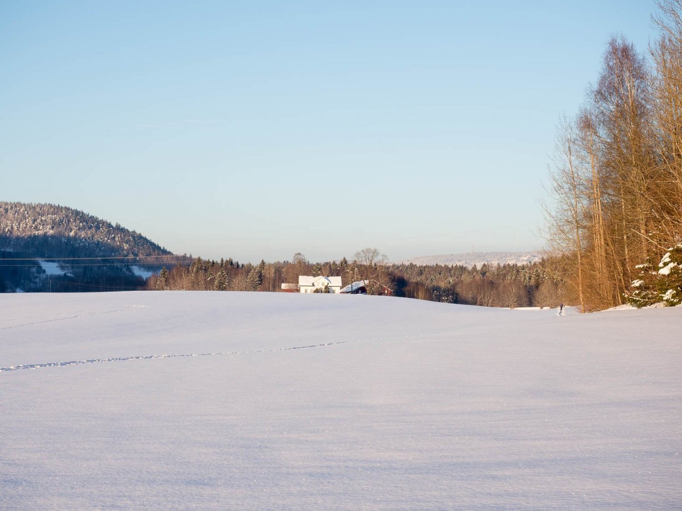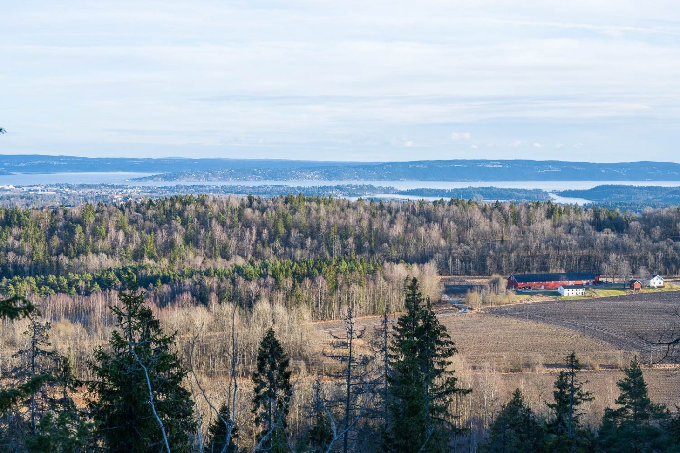 1. I dag endte jeg med å gå standard runden min i Kolsås-Dælivann landskapsvernområde i Bærum. Når en går langs jordene der skulle en ikke tro at Stor-Oslo ligger helt innpå. Akkurat nå er det snøfritt, det som har kommet av snø i vinter har forsvunnet etter kort tid. Det første bildet fra i dag. Og som kontrast et bilde fra nøyaktig nesten samme dato for to år siden. Og representerer normalen på denne tiden av året her. Utsyn fra et av de mange utsiktspunktene i Kolsås massivet. Her med utsikt over Dælivann mot Oslo-gryta og Fornebu med Telenor arena. Og det neste mot Nesodden. Og like etter kom jeg over årets første blåveis, selv om det fortsatt er februar.