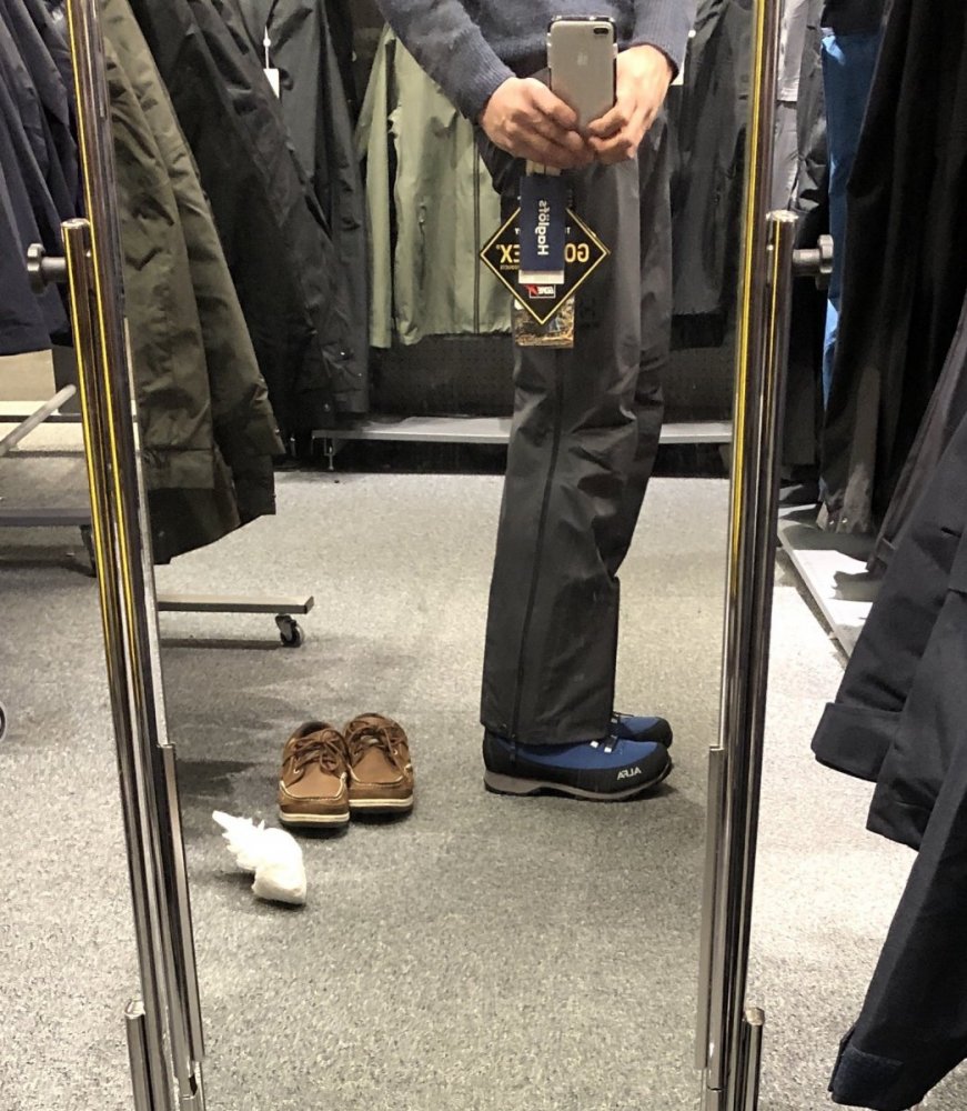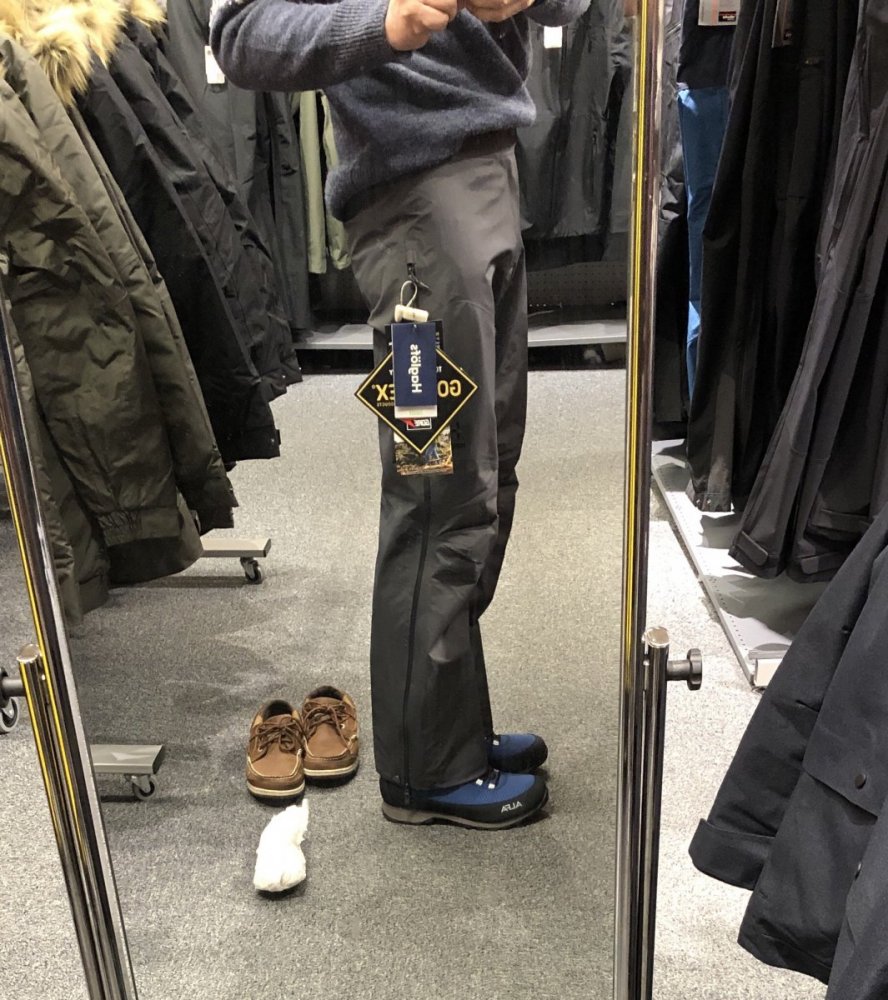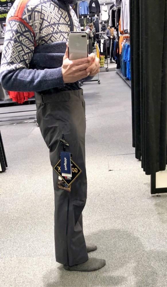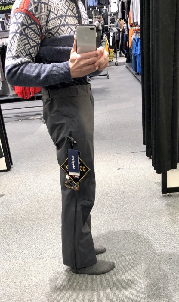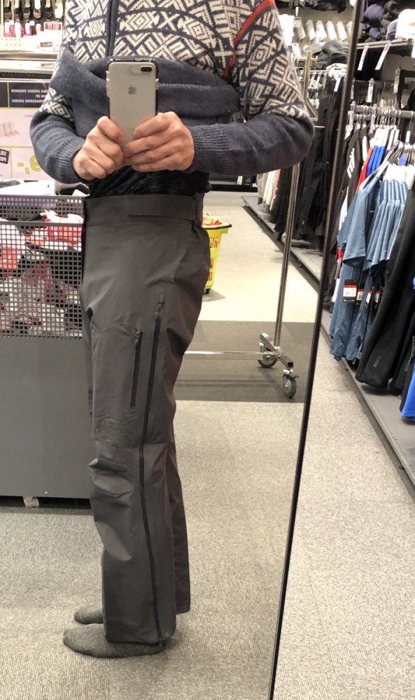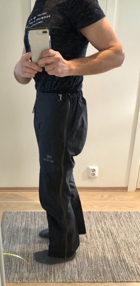 Fant meg ikke helt tilrette i Haglöfs-buksa med for mye vidde rundt livet. Leverte den tilbake, og endte opp med Arcteryx Beta SL i M Veldig overrasket hvor mye forsterkninger det er på buksa (N150p-X GORE-TEX). Den virker på ingen måte så tynn i stoffet som jeg trodde. Synes den virker veldig tykk i stoffet i forhold til min gamle Haglöfs LIM (tynn men supersterk). Hel glidelås er konge da man slipper å ta av fjellstøvlene. Passformen er mye bedre til min kroppsfasong. Er endelig lykkelig eier av https://arcteryx.com/no/no/shop/mens/beta-sl-pant