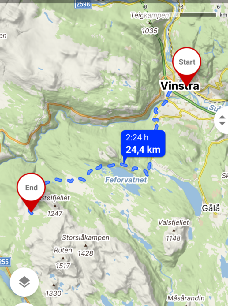 Når godværet slår inn i starten av juli er jeg et øyeblikk i tvil om jeg skal på fottur eller sykkeltur men konkluderer med at sykling er det som krever best vær og bestemmer meg derfor for Mjølkevegen. Mjølkevegen er en sammenhengende sykkelrute som går fra Vinstra til Gol over flere fine fjellområder med aktiv stølsdrift. Underlaget er stort sett grusveier av god kvalitet og ruten er ca 230 km. Jeg delte opp etappene i fire dager, pakket telt, sovepose og litt mat og startet fra Vinstra klokka 17:30. Første etappe ble mer krevende enn jeg hadde regnet med. Det var 26 grader, ikke et vindpust og sykling oppoverbakke i to og en halv time. Jeg tror det hang en diger svart sky av fluer over meg alle de 800 høydemetrene som jeg syklet. På omtrent det høyeste punktet før Ruten Fjellstue fulgte jeg en traktorsti oppover til jeg fant en bekk og en ok leirplass. Det er mye beitedyr langs hele ruta så jeg brukte vann fra bekker kun til matlaging og kaffekoking. Den andre dagen er målet å komme meg til Vinstre rett ved Bygdin. Jeg kjenner jeg er øm i venstre kne allerede etter dag 1, så det blir rolig sykling og en liten pause hver time. Jeg har bestemt meg for halvpensjon, der jeg har med frokost litt snacks og middag for den første kvelden. Ellers satser jeg på varm mat på fjellstuer og litt vaffler underveis. Det blir nydelig fjellsykling med bare en tøff motbakke den andre dagen på Mjølkevegen. Vannflaskene fylles der jeg er innom for en matbit og siste stopp for dagen er Haugseter fjellstue og noen deilige karbonader. Et lite stykke videre finner jeg en super leirplass. Jeg tar meg bryet med å trekke meg bort fra veien, selv om det gjør at sykkeltaskene må av sykkelen og bæres noen hundre meter. Jeg triller/bærer også sykkelen med meg. Den tredje dagen blir den hardeste. Selv om det bare er 73 km er det over 1500 høydemeter som skal klatres. Jeg har siktet meg inn på en lovende teltplass ved Søre Syndin og legger friskt avsted ved nitiden. Landskapet er åpent og veiene flate og fine langs Vinstre og jeg kan se bort på Bitihorn der jeg cruiser avsted. Etter frokost nummer 2 på Beitostølen blir det rulling på asfalt et stykke videre før oppstigningen mot Slettefjell starter. Slettefjell er rutas høyeste punkt på 1300 moh. Jeg legger luretopp etter luretopp bak meg og kan til slutt sige over topp- kneika og starte unnarennet. Det viser seg at Slettefjell ikke er det eneste som skal beseires denne dagen. Det blir over 800 høydemeter nedover til Vangsmjøse og derifra blir det nye 600 oppover. Og her starter utfordringene. På kart appen min, mapy, sammenfaller Mjølkevegen med Kongevegen ved Hemsing bru. Da jeg kommer ned dit får jeg se en liten bratt sti oppover. Det virker fullstendig galskap å slepe sykkelen opp dit. Jeg sykler derfor videre og prøver å komme med opp via noen traktorveier fra en gård. Der treffer jeg ei dame som råder meg å sykle enda videre til jeg treffer på ordentlig grusvei. Hun sier denne stien er helt uegnet for sykling. Så jeg er litt tvilende til om min rute faktisk er Mjølkevegen, at den er feil merket i appen. Halveis opp mot Syndin går jeg helt tom for krefter og juice i beina. Jeg må trille oppover de bratteste kneikene. Til og med sauene traver forbi meg. Det er foresten litt som å være på safari når du sykler denne mjølkeruta. Mange spennende dyr. Og noen uheldige dyr: Da jeg endelig kommer opp til Nørdre Syndin blir det til og med vading med sykkelen over utoset. Det smaker ekstra godt med middag på Syndingstøga og det blir to alkoholfrie øl på rappen. Den siste leirplassen blir den beste på denne turen med utsikt over Søre Syndin. Det gjør godt å komme i teltet for denne dagen var den absolutt tøffeste på hele ruta. Selv om den siste dagen er like lang målt i kilometer så blir den rene søndagsturen sammenlignet med gårdsdagen. Særlig Stølsvidda etter Vaset er et eventyr å sykle. Gode veier, flatt, utsikt utover vidde, myr og vann og Hemsedalsfjellene og tindene til Jotunheimen i horisonten. Personlig synes jeg ikke Golsfjellet, som blir siste etappe, kan måle seg med dette. Golsfjellet virker helt nedbygget og er kanskje det minst sjarmerende fjellområdet på Mjølkevegen. Men alt i alt har turen bydd på flotte sykkelopplevelser og jeg er glad jeg delte den opp i 4 dager. Det eneste jeg virkelig savnet var lettere gir på sykkelen...