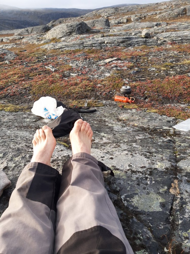 4) Eg trur det blei litt for mykje "fysisk trening" på meg på denne turen, og litt for lite natur. For meg er nok høgdepunktet det å kome fram til teltstaden, drikke kaffe og sjå på den vakre naturen. Det er då eg føler meg lykkeligst. Å vite at ein har gått ei eller tre mil på ein dag gir meg ikkje så mykje.