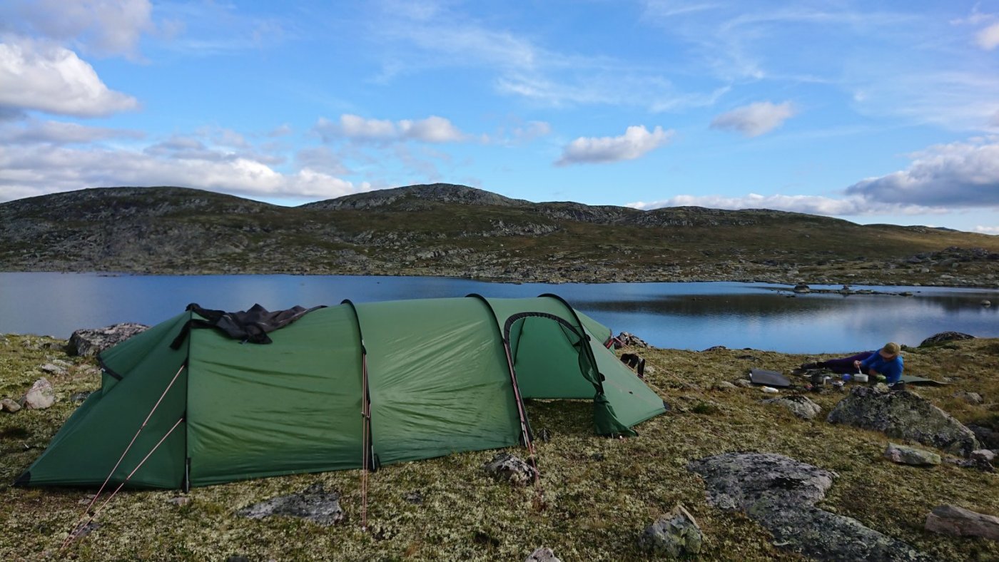 8. Hvis du klarer deg uten fortelt og skal ha ett telt til alt, er Hilleberg Unna svært nær rett valg synes jeg. Luksus plass innvendig, maksimalt enkelt og funksjonelt og tåler alt vær Hardangervidda kan varte opp med sommerstid... Og litt til😊 (Ingen problem å ta med dette på noen vinterturer heller).