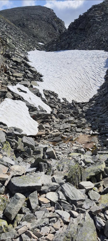 I juli 23 gikk jeg gjennom Dørålsglupen. Der lå det fremdeles mye snø. Bratt på begge sider av den store snøfonna. Alle hadde gått over den. Fristende å labbe over som alle andre. Men gjorde meg noen tanker om at jeg ikke ville falle gjennom, hørte at det rant vann under snøfonna. Er det noen som har noen lure tanker om skryssing av snøbroer og -fonner? Hvordan ivareta hms-en?