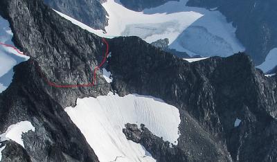 Har en viss peiling på risikovurdering når det gjelder skredfare, men den kunne sikkert vært enda bedre. Vi hadde med spade for å sjekke stabiliteten ved å lage en tverrgrop og banke med spaden på snøen ovenfor. Den virket stabil, men det kan jo variere fra sted til sted. Det var et fast lag i bunn, med en del pudder mellom dette og det øverste skarelaget. Greit å ha med seg søkestang, skredsøker og spade når man ferdes i slik terreng. Kunne forresten tenkt meg å leid en sertifisert tindevegleder en helg eller to for å rette opp uvaner/feil innen klatring, bre og skredrisiko. Samt kunne utvikle ferdighetene og få tips. Men nå blir det først et år i militæret. -