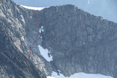 Rapport med bilder og kart: http://peakbook.org/tour/27364/Fors%C3%B8k+p%C3%A5+Gjuratinden.html -------- Mørkevandring opp lang bakke Lenge har jeg siklet på Gjuratinden (1712). Dette spisse og alpine spiret som tårner høyt over Isfjorden, som enhver umulig kan la være å imponeres av. I og med at jeg snart drar nordover i militæret ville jeg og Bjørn-Even ta en siste tur, og den skulle bli spenstig og uforglemmelig. Vi forsøkte på Gjuratinden vinterstid. Vi ankom sætra Rabben rundt halv ti kvelden før og slo opp mitt splitter nye telt (Terra Nova Super Quasar) på sletta nedenfor vegen. Følgende natt ble preget av litt dårlig søvn med mange tanker som strømmet rundt i hodet. Lytte til skred som tordnet ned fjellsidene, vinden som ulte ned gjennom dalen og mulige ting som kunne gå galt under en vinterbestigning. På grunn av at vi spiste grådig mye på Sinclair på Kvam like før gjorde at kroppsvarmen føk til værs, først langt utpå natta merket vi at det egentlig ikke var så varmt. Vi fikk nå litt søvn til slutt. Våknet kl. 05.15. Det har blitt få turer på oss i høst, så vi prøvde å komme inn i rutinene igjen. Kle på oss, spise frokost, gjøre klar sekk og ski – festen er i gang! Vestlandsfjella er imponerende, men baksiden (?) er at en bestigning her alltid byr på en laaang motbakke fra nærmest havnivå til himmelhøyde. Låra fikk i alle fall kjørt seg oppover med digre randoski (Bjørn-Even hadde lette fjellski, gru deg til nedrennet!) og gørrtung sekk som inneholdt blant annet klatreutstyr og varme klær. Det var snø helt fra start og vi prøvde å følge t-stien opp gjennom skogen. Opp gikk det greit, men vi grudde oss allerede til returen ned her... Lenger oppe gikk skareføret over til pudder og ved Førhaugsteinan skiftet det mellom pudder og hardpakket snø. Skredfare? Det var stemningsfullt å gå i mørket og titte ned mot bebyggelsen rundt Isfjorden som glitret som tusen stjerner. Dette får man ikke oppleve i Jotunheimen. Natta var lang og vi ønsket etter hvert at det skulle bli lysere. Hyppige spise- og drikkepauser gjorde til at lyset kom kjappere, følte vi. En ting vi var litt spente på var rasfaren. Etter å ha lest side opp og side ned om juleorkanen Dagmar ble jeg litt skeptisk til akkurat dette. Men det beroliget meg litt å tenke på at denne bakken er vestvendt og at skredfaren kun var moderat på Strynefjellet sist jeg sjekket. Etter Førhaugsteinan kommer én bratt bakke hvor vi fulgte en slags rygg. Deretter flatet det litt ut før det ble så bratt at det bikket 30 grader. Her gikk vi spredt og forsiktig i sikk-sakk oppover. Til høyre for oss hadde det gått et skred som vi kunne skimte i grålysninga, så vi følte oss ikke helt komfortable. Men snøen virket i grunn stabil og vi kom opp uten å merke antydninger til drønninger. Herfra og videre opp økte vinden kraftig på med mye snøfokk som gjorde det til en kald opplevelse. Bjørn-Even hadde problemer med at stålkanten på den ene skia løsnet og at fellene ikke satt godt nok. Ved å brekke stålkanten og surre sportstape rundt fellene fikset vi biffen. Låra var seige, men ved å ta skritt for skritt over tid kom vi til slutt oppunder Gjuratinden som så enormt stilig ut fra denne vinkelen. Nå fikk vi også se litt av sola som skinte med oransje farge på toppene omkring. Det var noen skydotter her og der som skygget litt for sola og det var ikke helt tydelig å se om sola nettopp hadde stått opp eller om den var på vei ned. Dagene er korte så vi hadde bare tida av veien om vi skulle rekke til topps på Gjuratinden. Gjuratinden – we`ll be back Vi rundet like oppunder Gjuratinden i østsiden og parkerte skiene ved en stor bresprekk under en skråflanke av snø som førte opp til sørryggen. Hadde nå brukt hele 5,5 timer fra bilen og opp hit! Skjemaet begynte å ligger tynt an, og vi var spente på hvor lang til vi ville bruke på toppstøtet. Brukte litt tid på å skifte fra randostøvler til alpinstøvler og diverse greier, altfor lenge siden forrige vintertur, må få til hurtigere overganger. Omsider var vi klare for toppstøt, med en sårt trengt lettere sekk. Snøen opp skråflanken var virkelig djup. Sank ned til hofta for nærmest hvert steg. Selv om den heldigvis ikke er lang måtte vi skifte på å brøyte minst to ganger. Endelig var vi oppe på ryggen og vi skuet opp på den majestetiske Gjuratinden som badet i midtvintersol, et forlokkende skue. Eggen oppover var stort sett grei å følge med ymse snø og is som gjorde små opptak mer krevende enn på tørrføre. Så kom vi til en hammer der vi bestemte oss for å runde denne på venstre side. Etter å ha rundet hjørnet måtte vi ned et litt kinking punkt før vi kom inn i en snørenne. Her kunne vi velge å følge snørenna opp til ryggen eller å klatre på is/klippe ved siden av. Etter litt nøling ble det til at vi stort sett fulgte snørenna som var drøyt 40 grader bratt. Siste delen måtte vi traversere på klippe for å komme opp på ryggen igjen. Klokka var nå 13.00 og det mørknet om tre timer. Bjørn-Even var skeptisk til å fortsette grunnet tid og manglende vinterklatreerfaring med stegjern og isøks. Optimistisk som jeg stort sett er klarte jeg å overtale ham til å fortsette litt til. Her valgte vi å ta fram tauet og jeg ledet opp et litt kinkig punkt før en høyere hammer sperret veien videre. Jeg valgte å skjære ut til venstre og etablere standplass. Bjørn-Even kom seg opp han også. Jeg skjønte også at tiden snart rant ut for oss, etter å ha rundet hammeren på venstre side og sjekket veien videre så jeg at hvis vi skulle sikre hele veien ville vi mørkne ute før vi var tilbake ved skiene. Vi hadde rett og slett ikke tid til det. Litt bittert i og med at toppen kun var snaut 80 meter unna... Gjuratinden, vi kommer tilbake! Nær-døden-opplevelsen Vinden tiltok kraftig og det var meldt opp mot stiv kuling i fjellet utover ettermiddagen. Lett å bli satt ut når 