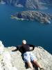 Hornelen 26.juli – Nord-Europas høyeste sjøklippe500fjell svarte på Ole-Petter sitt emne i Turrapporter Fine bilder Ole-Petter, var der 10. juli i år med en hel gjeng med slekt fra Stryn. Vi var sikkert over 20 stykker Kom mange klager fra små barn siden den veien vi gikk var det en del luretopper underveis Vi gikk forresten fra Lisete, og på en god sti til topps. Den sørøstveggen er kanskje noe av det mer luftigste jeg har sett, man får følelsen av høyde da en ser de små bølgeskjærene i havet! Har også hørt det sagnet om Olav Trygvasson, men sa han sikkert bare for å opparbeide sitt navn og respektfulle yrke Som toppoman så måtte jeg også ta noen ekstra topper på returen, det ble Hornelen, Svartevassegga, Uraheia S, Storenipa, Åsen og Haugekletten (måtte løpe blant inngjerda okser for å komme fram )! Etter turen rakk vi ikke ferga til Stårheim pga. en middag i Kalvåg. Så jeg og pappa måtte dele på å kjøre gjennom natta til Førde og Jølster. Var i Stryn rundt 04.00 Skal tilbake til Bremanger et år, da må jeg være med på Veten Opp fra Grotlesanden Greit at jeg viser noen bilder fra Hornelen? (argg! klarte å knuse kameraet mitt i en stein på Hornelen )!