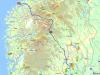 Forord (dagene før dagen): De siste dagene har jeg tilbrakt på min families landssted i Risør, det har vært noen fine dager, men en god del vind. Før jeg dro sørover tok jeg en titt på min gode venn Norgesglasset for å sjekke om det var noen topper i området. Jeg bestemte meg for å vurdere noen kommunetopper, og plukket ut på World Wide Vikings ( www.wwv.no ) sin hjemmeside. To dager før ”turen” jeg skal skrive om var jeg en tur innom Arendal for å delta i mitt første O-løp. Det var kretsmesterskap og jeg fant postene, men som nybegynner tok jeg feil på en post da jeg ikke skjønte kontrollkodene for mine poster. Etter det kjørte vi nordover fra Froland og sprang gjennom tett eikeskog opp på Ansmyrheia (260). Tvedestrand kommune sin høyeste topp. En liten svipptur fra Vålandstjern (3 km), men utsikten var ikke stort å skryte av bare litt sikt ut mot havet på østsiden av åsen. Men jeg kan anbefale å sykle veien mellom Vålandstjern og Nes Verk, noe av det morsommere jeg har gjort, sykla til Risør (37 km). Så var selve dagen for sommerens fjellvorspiel kommet! Tirsdag 10. juni hadde jeg planer om å sykle og løpe fra hytta i Risør, og bestige høyeste topp i Risør (Espehaugen 244 moh), Gjerstad (pkt. ved Solhomfjell 587 moh) og Vegårshei kommune (Hovdefjell 524 moh). Når jeg ser på norgeskartet virket dette passe overkommelig ut, men det skjuler seg mange harde mil på svingete og kuperte sørlandsveier. Jeg estimerte turen på øyemål ca. 10 mil totalt, men det ble lenger enn som så. Den sure vinden!: Etter jeg leste turrapporten til Mayhassen sin tur i Gjøviktraktene ble jeg inspirert til å gjøre en liknende tur. Siden jeg ikke har noen racersykkel var jeg heldig og fikk låne landeveissykkelen til min onkel (takk!) til denne turen, det gjorde dagen mye artigere så jeg kunne sykle raskere. Jeg er ikke vant med lange sykkelturer, mine økter ligger vanligvis ikke lenger enn på 7 mil. Dagen før pakket jeg sekken med en vindjakke, terrengsko, saft og vann, sjokolade, brød, rosiner, GPS og kart, lappesaker og penger. Det meste skulle være klart for en super tur! Stod opp klokken 06.34, spiste frokost, pusset tennene og gjorde mine siste forberedelser. Hoppet opp på sykkelen (kl. 07.20) og merket at jeg ikke hadde fått sovet nok denne natta, altfor varmt og mye spenning forstyrret nattesøvnen. Været var pent med spredt skydekke og passe temperatur, men VINDEN fra vest (alle kanter!) var ikke til å kimse av. Over 10 m/s blåste det, og verre i kastene! Men jeg tråkket i mot, og musikken på øret hjelper på humøret når en sykler alene. Startskuddet og Espehaugen (244): Veien ut mot Akland har jeg gått noen ganger på rulleski før, men herfra var det opp med kartet for å orientere seg videre. Jeg tok feil på noen sykkelveier ved Sørlandsporten, men til slutt parkerte jeg sykkelen ved et hogstfelt i nærheten av Moland. Her går det en traktorvei et stykke opp på østsiden av Espehaugen, men den er litt vrien å finne. Så turen opp ble litt bushing i skogen før jeg kom innpå veien. Det går en umerket sti opp til toppen fra der traktorveien slutter. Det var litt utsikt på østsiden av åsen, men ellers skog på selve toppunktet. Deilig å ha vært på høyeste punkt i en kommune jeg har hytte i! Nå var turen godt i gang og etter å ha satt meg på sykkelen igjen satte jeg kursen mot Gjerstads dype skoger. Syklet om Indre Søndeled og inn til Gjerstad sentrum, holdt meg unna E18. I Gjerstad tok jeg litt formiddagsmat før en liten oppstigning mot Øy og Nissedal stod for tur. Nå blåste det bra, men naturen i området var fabelaktig med nydelige vann. Landskapet minnet veldig om området rundt Skrim og Blefjell, eller mest likt Sørlandet. Solhomfjell, dagens høydepunkt: Litt før høyeste punktet på ”fjellovergangen” syklet jeg opp en grusvei ved Heiland. Jeg parkerte sykkelen og studerte et kart over Solhomfjell naturreservat. I området går det skiløyper om vinteren og fine turstier. Fra P-plassen (260 moh, bratt vei opp) som er en snau kilometer nord for Heiland går det blåmerket sti til blant annet Solhomfjell (over 6 km). Godt å få på seg joggeskoene igjen, og ingenting er som å jogge i vakkert fjell/heiterreng i pent vær. Etter noen høydemeter var jeg oppe på Marisheia (574), her gikk det litt ned før jeg stakk opp på et naturlig punkt hvor høyeste sted i Gjerstad var. Siden jeg var i området var det ikke lange veien bort til selveste Solhomfjell (659 moh i Nissedal). Dette var en skikkelig sørlandsperle, med god utsikt ut mot havet og mot innlandet. De bratte fjellsidene på vestsiden av Nisser dominerte utsikten mot nordvest. En kunne også se Lifjell, Jonsknuten, Urdnosi, Hovdefjell og Sørlandsheiene. Dette måtte nytes noen minutter med litt niste, vinden var sur så jeg satte meg bak en stein. Dukkert, og kroppen kjenner kjøret: Etter å ha skrevet seg inn i topprotokollen til Havrefjell Turlag jogget jeg ned til sykkelen. På veien unnet jeg meg et aldri så lite bad i en liten pytt, deilig å få av seg litt skog og svette! Når jeg studerte kartet så jeg fram til noen herlige sammenhengende nedoverbakker mot Øy fra Heiland, neida det gikk stadig oppover. Og når det gikk ned, ble det straffet med noen motbakker som følge. Da er det greit å tenke på Arne Garborg sine ord; ”Hadde det ikke funnes motbakker, da ville ikke mennesket kommet høyere”. Så motbakker, det er gøy! Vinden er verre, den som hadde hatt et sykkelfelt å ligge etter nå… Fra Øy til Åmli var det stadig ingen dans på roser, nå kom vinden på langs av Nidelva og vinden kom fra sør i kraftige kast. De 17 km ned til Åmli føltes ut som 17 mil for å være ærlig. Åmli, Hovdefjell og skogbrann: Her bestemte jeg meg for å ta en timeout, og få i meg skikkelig med næring. Inn på Ica og Essostasjonen, opp med bankkortet og dyttet i meg et eple, hamburger, sjokolademelk og noen kanelgifler. Var kanskje ikke det