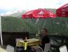 Wikipedia sier om Weisshorn: The ascent is not a piece of cake, but it's worth the effort. Vi overnattet lenger mellom riksveien og Zermatt, litt lenger nede i dalen hjemme hos noen som leide hybel for overnatting. "Petit déjeuner" (frokost) var på kafeen rett over veien. I Zermatt var det rådyrt med hoteller Det dumme med vårt valg var at vi måtte vente på banen opp til byen på hvert besøk, men den går jo kontinuerlig.