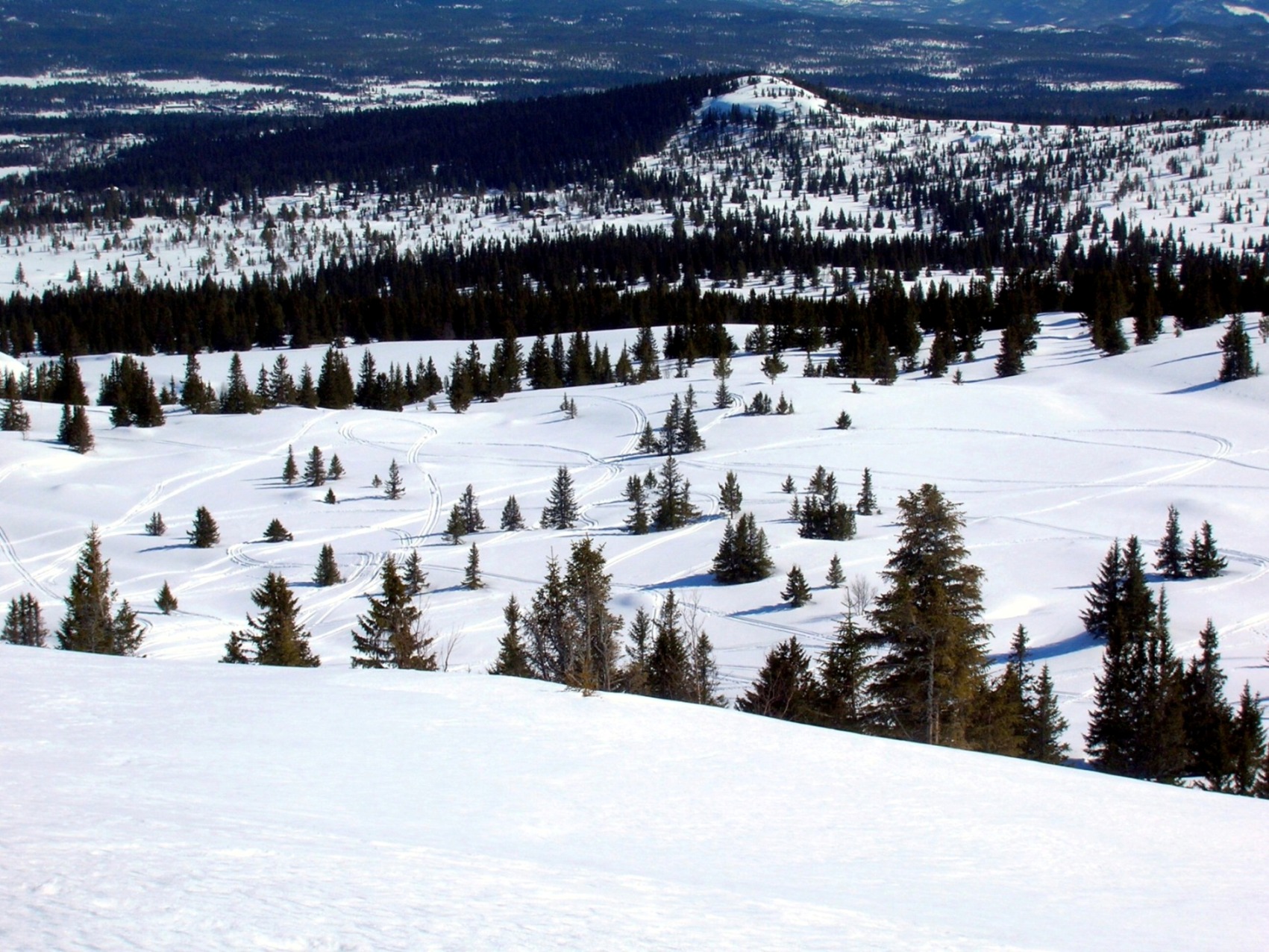 3. Her kommer nok en turrapport fra gromhelgen som var. Kjørte opp til Hallingen Høyfjellshotell på Golsfjellet fredag 18. april, det var en del kø oppover Hallingdal da en god slump skientusiaster skulle legge i vei 38 km fra Finse til Ustaoset. Det var meldt et stabilt høytrykk flere dager framover, så for en gangs skyld var Bestemor beroliget over været Etter en natt på Hallingen dro vi mot Hemsedalsfjellet, der ligger et 1920 meter høyt fjell som heter Høgeloft som jeg egentlig har litt dårlige minner med fra før. Høsten for tre år siden ble jeg møtt med en halv meter snø å vasse i, da ble alternativet Vesle Jukleeggi i stedet. Andre gangen var februar for to-tre år tilbake, da fikk jeg oppleve at Hemsedal sentrum og 1920 moh var to forskjellige verdener! Mine tynne flishansker klarte ikke kuling og 20 minus på toppen, jeg har aldri fryst så mye før, så denne gangen hadde jeg tatt med tykke votter selv om det så ut til at jeg ikke fikk bruk for dem. Vi var fire stykker på turen, og etter å ha parkert bilen på en liten P-plass like før Oset smurte vi oss inn med solfaktor 30 for babyer som det alltid står på slike flasker Vi la i vei over Eldrevatnet og tok sikte på å følge dalen som er vest for Store Jukleeggi. Det var så varmt at jeg kunne gå barkledd og uten stilongs hele turen, virkelig kongevær! Vi smørte skiene med VR 45 og satset på å gå med feller når stigningen begynte for alvor, det var faktisk tørrsnø hele turen. Når vi kom innover dalen fikk vi litt utsikt mot Hurrungane og Skarvheimen, fjellene lå badet i snø som jeg vil tro holder langt ut i månedsskiftet mai/juni! Tro om igjen dere bypakk som ikke tror at det finnes en snøflekk igjen i Norge Fulgte fjellskråningen inn til dalskillet der en elv kommer fra et vann på 1668 moh. Her tok vi en liten pause før vi fortsatte ufortrødent videre i det venstre dalsøkket mot pkt. 1731. Fellene kom godt til nytte, og snøunderlaget var fast og fint å gå på. Når vi kom til vannet 1668 var vi litt usikre på hvor vi skulle gå, men GPSen mente at vi skulle ta sikte mot skaret rett sør for pkt. 1815. Nå kunne vi se toppen, og som vi "fryktet" var vi ikke de eneste som hadde tenkt tanken på en tur på Høgeloft. Vel oppe tok vi en god pause og nøt panoramautsikten mot Jotunheimen, Skarveheimen, til og med Gaustatoppen stakk opp i det fjerne! Vi kunne sitte barkledd på toppen, uten et vindpust og slikke "påske-etter-påske" sola. Vi kunne skimte bort til sommerens mål i Jotunheimen da vi håper å rangle oppå topper som Mjølkedalstind, Falketind og Storen hvertfall Nedturen tok vi over Store Jukleeggi for å få en topp til på lista. Jeg har fortsatt ikke fått meg fjellski, og siden jeg begynner å bli en stor gutt blir det stadig vanskeligere å renne i fjellet på smale Madshus performance langrennski med slitte kanter Resten av turen var bare kos, vi fulgte elva fra vann 1668 og rant jevnt nedover mot Eldrevatnet. Fikk noen herlige renn, selv om de voksne klagde litt over at de ble stive i låra etter all hockeystillingen. Alle var enige om at vi hadde en fin tur på en dag man får et fåtall av i året. Det var deilig med tacos etter turen, og god samvittighet hadde vi alle;)