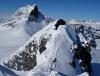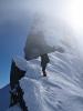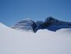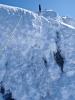 Dag: Hehe, jeg kan skrive under på at det var en torsdag utenom det vanlige. Øyvind: Kjempefine bilder! Godt man klarer å fotografere selv om blodet fosser og adrenalinet nærmest tyter ut av ørene, bilder fra slike situasjoner blir verdifulle. Vi ble en del erfaringer rikere ja. Denne eggen er i grunn perfekt øvelse dersom man vil prøve seg på lengre og mer utilgjengelig vinterklatring. Bjørneggen er teknisk vanskelig, men returmulighetene (rappell) er mange dersom noe skulle skje (det verste blir om man mister tauet). Jørn: Det var ikke veldig langt fra at jeg fikk Tommy Steine-syndromet der oppe. Men stoler man på makkeren og utstyret da "ordner det seg". Ofte synes jeg det er mer skremmende på forhånd (forventningsangst), å gruble/drømme på hva turen vil bruinge og at kanskje dette blir den siste dagen i livet... Jeg generaliserer ofte farene på forhånd, men det løser seg stort sett når en møter faren! Knadne: Torsdag og fredag var det mer vinterlige enn vårlige tendenser i Jotunheimen. Ifølge Ole Jacob på Leirvassbu hadde det blitt gjort bremålinger på Bjørnbrean for noen dager siden. Laveste nivå lå rundt 1,5 meter og høyeste rundt 2,5. Det har jo kommet mye mer snø siden påsken og vært kjølig, så nå er det normale forhold. Det er et pudderlag over skaren stort sett, så når nå må vi bare vente på varmen slik at snøen blir fastere og eggene/ryggene blir bare. -