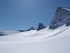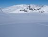 Er bratt ned den nederste skråningen. Hvis det er hard skare kan en utglidning gi fatale konsekvenser.