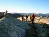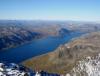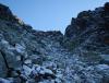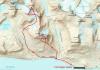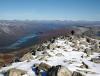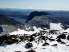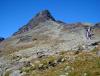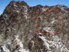 Med slik en overskrift skulle man tro at dette må ha vært en nikjip turopplevelse, men da får dere tro om igjen. Dette var kanskje den siste turhelgen med nye 2k-topper for i år, og for en avslutning på sesongen! Tre turer ble det, jeg beskriver de to første og så skal Nils gi referat fra den siste. Takk til ”Askogvoll” for hyggelig turfølge på lørdag! ”Rasletind Sørvest” 12. september I juni gikk jeg og Bjørn-Even på ski over alle 2000-metringene i Kalvehøgdmassivet ( http://tinderanglerne.blogspot.com/2009/06/to-rangledager-med-basecamp-i.html ), det trodde vi i alle fall… Nylig oppdaget Morten en 10-metring sørvest for Rasletinden, og den hadde vi passert bevisst! Så da var det bare å bite i det ”sure eplet” og vandre inn mot Kalvehøgde i ens ærend å sanke en ussel timetring. Starten gikk fra Valdresflye Vandrarhjem etter en god natt i bilen med ny tempurmadrass! Det blåste frisk bris med kuling i kastene fra vest og skyene drev over flya med jevne mellomrom. Etter hvert tok jeg meg opp på Raslet og kløv direkte opp mot Rasletind (2105). Her var det litt klyving øverst hvor man bør holde mot høyre, lenger til venstre rotet jeg meg bort i mer krevende klatring inkludert is og snø. Da jeg til slutt kom meg opp på Rasletindplatået begynte det å komme snø med den sterke vinden. Jeg var glad for at alpinbrillene var med samt vindsekk i tilfelle jeg skulle skade meg! Toppen ”Rasletind Sørvest” var ikke mye å skryte av, en avrundet knaus som knapt likner en forhøyning i terrenget. En varde lå på toppen, og jeg ventet ikke lenge før jeg feide ned til Raslet igjen og videre ned på Valdresflya til bilen. Deretter kjørte jeg bilen ned til Bygdin Fjellstue og tok båten inn til Torfinnsbu (les: 500 m vest for Nybue). På Bygdin blåste det friskt, og stod du ute på dekk var du garantert å bli dyvåt av bølgene. En fin tur var det i alle fall. Teltet ble slått opp utenfor Torfinnsbu som var stengt for sesongen (en bedrift lånte den i helgen), og få minutter senere dukket ”Askogvoll” fra Fjellforum ut av buskene. Vi hadde store ambisjoner for neste dag så leggetiden ble tidligere enn normalt… Torfinnstraversen, Kvitskardtind og en våt promenade 13. september Avmarsj fra Torfinnsbu skjedde kl. 06.15 i grålysningen. Ute var det fantastisk vær, med tilnærmet ingen skyer på himmelhvelvingen! Endelig en tur med skikkelig godvær, det skulle smake godt. Alexander (Askogvoll) kunne meddele at i år hadde han faktisk nesten ingen turer med dårlig vær, og drittværsturene kunne han telle for én hånd. Kanskje uværsstempelet hans bør bli fjernet snart? Det var bratte bakker opp mot renna til Øystre Torfinnstind og høydemeterne gikk raskt unna. Vi fant til slutt hovedrenna og gikk rett på. Det var et par klyepunkter som måtte forseres, disse kunne man visstnok omgå lenger mot venstre. Inne i renna lå det snø og is, og vi var begge enige om at denne toppen ikke er noe barneskirenn med slike forhold. Fotstegene måtte planlegges for å unngå glissade, og i tillegg måtte vi passe på å ikke løse ut steiner på hverandre. Det er viden kjent at Torfinnsrenna er løs og utsatt for steinsprang, vi brukte derfor hjelmer i tilfelle frostsprengning eller annen steinras. Vi fulgte mot venstre i alle ”veikryss”, her var det merket med røde T-er. Synes det er forkastelig at en slik tur merkes når det blir opptøyer mot merking på Knutshøe!? Siste stykket holdt vi ut mot eggen på venstre side av renna, her var det flere utsatte punkter mtp den sleipe snøen. Det siste stykket på eggen tok jeg på meg stegjern (Alex hadde glemt det = Tabbe!), gikk foran Alex og sikret ham på topptau. Etter hvert fikk vi god flyt i taubruken, og forsøkte å ikke sløse for mye med tiden. Vi hadde nemlig tidspress på oss, Alex måtte hente kjæresten på Tønsberg Stasjon kl. 23.30, og hun ville ikke bli imponert dersom det ble forsinkelser grunnet fjellturen. Det var en fantastisk utsikt som møtte oss på toppen av Øystre Torfinnstind (2119)! På de høyeste toppene lå det et tynt melisdryss av snø og i dalene lå lyngen med en kappe av oransje høstfarger. Bygdin lå langt der nede og speilte fjellene i det turkise vannet, kan man få det bedre. Riktig nok var det en liten trekk fra vest oppe på toppen, men det var bare deilig å kjøle seg ned etter en lang og spenstig motbakke. Etter å ha hevet i seg en skive og litt sjokolade sprang Alex i forvegen for å lete etter rappellfeste. Under slike forhold vi hadde var det rett og slett for utsatt å bare komme seg ned til rappellfestet uten sikring. Jeg hadde stegjern og klarte meg fint, men Alex hadde kun glatte gummisåler av noen fjellstøvler. Dermed sikret jeg ham ned til rappellfestet før jeg kom etter. Rappellen ned mot vest var 25 meter lang og lå litt ut mot Svartdalen. Alex var førstemann til å fire seg og begge kom seg ned uten problemer. Opp mot Midtre Torfinnstind ble det en del roting for å finne beste rute. Snøen skapte så mange problemer vi ville sluppet med tørt fjell. Vi kom oss til slutt opp på midttoppen etter en del roting i bakken opp mot denne. Spesielt et sted måtte vi klyve mot venstre for å komme inn i renna opp mot toppen. Her måtte man slippe seg ned uten noen spesielt gode tak. Var glad for at Alex gikk først og jeg kunne hive sekken min ned til ham før jeg kom etter, noe nølende. Punktet er avbildet her: https://www.fjellforum.no/oldLinkConverter.php?oldAttach=3857 (fra denne rapporten: https://www.fjellforum.no/index.php?app=forums&module=forums&controller=topic&id=6076 ) Føltes mer utsatt enn det ser ut til, spesielt med all isen! Fra Midtre mot Vestre var det tre rappeller, den første og siste på 25 meter og den midterste på 10 meter. Det lå en hvit slynge med en jernring tredd på tauet ved alle rappellfestene. Vi brøt normen om å aldri bruke gamle slynger og benyttet denne hvite slynga med jernring på alle rappellene. Etter før