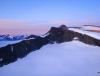 Det ble ikke særlig mye søvn denne natta i bilen på Spiterstulen på grunn av noen bråkete ungdommer som festet. Men om natta var det klarvær og jeg stod opp klokken 03.00. Det var minusgrader ute og jeg vandret i tussmørket oppover Visdalen med hodelykt. Sommerbrua lenger oppe over Hellstuguåi stod ikke oppe, men i stedet for å gå ned til helårsbruene klarte jeg å krysse elva på noen isglasserte steiner. På vei opp mot Hellstuguhøe ble det så lyst at jeg klarte meg uten hodelykt. Frosten hadde gjort steinene faste og jeg merket ikke en eneste løs stein opp til Hellstuguhøe. Jeg fikk en fantastisk soloppgang på vei mot Nordre Hellstugutind! Det var så godt som ingen skyer på himmelen, lyset var babyrosa og utsikten mot Hurrungane og videre mot Midtre Hellstugutind fikk hjertet til å hamre godt over terskel! Jeg er heldig som får oppleve noe så vakkert tenkte jeg mens jeg vandret over nordtoppene på vei mot Midtre Hellstugutind. Skal man følge ryggen hele veien bort til Midtre Hellstugutind må man over 1-2 nokså luftige passasjer. Det er mest spennende å gjøre det, men om man ønsker kan man omgå disse stedene ned i vestflanken. Etter litt småklyving på isete steiner var jeg oppe på Midtre Hellstugutinden. Her følte jeg meg virkelig på ”taket”! Utsikten måtte bare nytes ved varden som fascinerende nok er plassert på nærmest et overheng ut mot Hellstugubreen. Langt bak i horisonten rundt Hemsedalsfjellet så jeg en mørk skyfront nærme seg. I følge yr.no skulle ikke snøværet starte før kl. 13.00 så jeg stresset ikke. Videre var det lett og greit ned på sadelen mot Store Hellstugutind. Etter Store Hellstugutind N-2 måtte jeg ned i et nytt skar før jeg klyveklatret opp på Store Hellstugutind N-1. Jeg kom for mye til venstre i hammeren og fikk litt saftigere utfordringer enn hva man får på høyre siden. Partiet opp mot Store Hellstugutind var den delen av turen jeg var mest bekymret for. Den første hammeren gikk greit, og var egentlig lettere enn partiet opp mot N-1. Deretter fulgte jeg ryggen opp til andre hammer som jeg aldri i livet ville prøvd på usikret. Hammeren var isglassert og et frossent tau hang ned fra et rappellfeste over. Jeg trakk ned mot høyre og klyveklatret opp noen hyller før jeg enkelt kunne klyve til toppen av hammeren. Hammeren var ikke helt slutt her oppe, og jeg måtte klatre litt til for å komme på toppen. Likte meg ikke her, og holdt svakt i det isete tauet i tilfelle glissade. Siste stykket opp til toppen gikk greit sett bort i fra en kort hammer som jeg klatret, eller man kan omgå den til høyre. Endelig stod jeg på toppen av selveste Store Hellstugutinden. Toppen så mange jeg kjenner har skrytt av. Jeg forstår dem veldig godt, for herfra kan man jo nesten se til verdens ende. Skyene begynte å trekke inn fra sør, og himmelen var ikke like krystallklar som tidligere. Men dagens crux var unnagjort så snøvær var ikke like farlig nå. På vei ned fra Store Hellstugutind var det merket med røde piler og bokstavene ”SH”. Dette synes jeg som mange andre ikke noe om! Etter Nestsøre Hellstugutinden måtte jeg klyve et par steder for å komme meg ned til sadelen mot Søre Hellstugutind. Jeg holdt tempoet oppe, og håpet jeg ville nå Hinnotefjellet før snøværet dundret i gang. Det gjorde jeg dessverre ikke. Rett etter Søre Hellstugutind begynte det å blåse og snø tett i tett. Utsikten fra Hinnotefjellet var ikke akkurat turens beste minne nei. Jeg var usikker på hvilken vei jeg skulle velge tilbake, valget stod mellom retur om Semelholet og Søre Hellstugutind. Jeg tok førstnevnte. Ned til Semelholet måtte jeg forsere og omgå en del ekle sva for å komme meg helt ned til Semelbreatjønne. Opp til 1799-skaret var det også en del sva, men heldigvis var dem fri for glatt lav så friksjonen var god. Nå var været skikkelig surt, og etter en nistepause i Uradalen ble det rask gangen ned til Visdalen og Spiterstulen. Litt før Spiterstulen møtte jeg på et hyggelig ektepar som måtte snu på Hellstuguhøe. De hadde sett sporene mine, men på grunn av snøværet fortsatte de ikke. Så dem angret på at de ikke stod opp litt tidligere. Turdata: 10t 45min 2455 høydemeter 32,5 km 11 topper > 2000 moh.