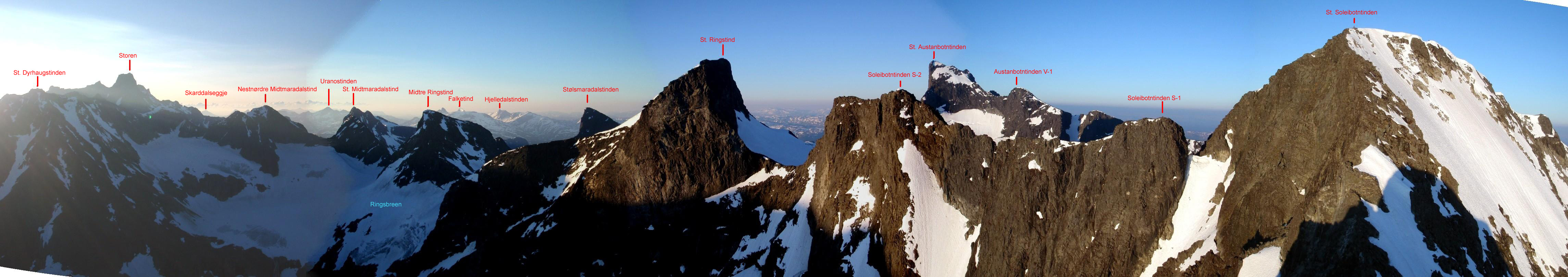 17. Hehe, ja man kan jo kanskje få nok av sol i blant. Det var i alle fall TROLSK stemning opp flanken fra Hurrbrean. Men med det været hadde jeg egentlig mest lyst på en kort tur (deilig det i blant òg) og spare langturene til godværsdagene. Nei, vi gikk ikke ned mot fortoppen, bare bort på kanten og tittet. Var ellers bare på de to høyeste. Om jeg en gang skal gå på Skagsnebb igjen, blir det nok via fortoppen og muligens ta en rappell ned derfra.