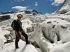 23. Bilder og kart her: http://peakbook.org/tour/17007/Regntung+tur+mot+Galenstock.html Dagen før, etter en lang og varm kjøretur gjennom Tyskland ankom vi Furkapass sent på kvelden. Vi hadde planer om en liten akklimatiseringstur til Galenstock neste dag. Overraskende nok kunne vi kjøre opp til en parkeringsplass ved Matten 150 meter høyere enn Tiefenbach. Betalte noen få sveitsiste franc for å stå her. Neste morgen startet vi å få opp den gode stien til Albert-Heim-Hütte. Møtte hyttevakta på firhjuling nedover stien, skulle vel sikkert hente forsyninger og materiell. Etter en snau time var vi oppe ved hytta. Strengt tatt hadde vi ikke trengt å gå helt opp dit, men vi ville ta en titt. Jeg benyttet også anledningen til å ta en tur på toalettet. Spurte en nepaleser om ruta til Galenstock, og han pekte og forklarte hvor det var vanlig å gå. Vi fulgte en fin sti i moreneområdet bort mot Tiefengletscher. Et sted svingte stien til høyre, men vi valgte å heller gå bort til bretunga, så vi dro mot venstre. I ettertid fant vi ut at stien som svingte til høyre nok gikk opp til breen, men kom innpå ved pkt 2765. Plutselig så vi et lite pelsdyr som sprang over stien og gjemte seg i ura. Aner ikke hva det var, men artig å se litt dyreliv. Ved breen tok vi på oss stegjerna og spaserte oppover. Det hadde så smått begynt å regne og det dannet seg små smeltebekker i breen som var litt gufne å gå i. Ved 2700 moh måtte vi over noen bresprekker, ved å gå litt på kryss og tvers kom vi over uten større problemer. Vi hadde fin blåis oppover, så vi behøvde ikke tau med det første. Lenger oppe kom vi til slutt inn i tåkeheimen. Begge merket en svak trøtthet. Vet ikke om det var pga lite søvn i natt eller høyden. Da vi passerte 3000 moh dreide vi i u-sving mot venstre og traverserte i den bratte breflanken øst for Galenstock. Her var det mer snø og til dels store og lumske sprekker, så vi valgte å ta på oss tau. Nå begynte det å regne noe voldsomt, og ovenfra begynte det å rase ned løse steiner. Ikke moro! Tåka var tett, og det var vanskelig å finne den korrekte oppgangen til sadelen nord for Galenstock. Jeg hadde trodd at det var en snørenne opp dit, men det viste seg å være svært løs klatring. Etter litt leting og prøving på å klatre opp valgte vi å blåse i toppen. Fjellet var meget glatt og råttent og det raste ovenfra på grunn av regnet. Den er dog gradert til AD, samme som Matterhorn via Hörnli-grat, så det var ingen skam å snu. Man skal jo kose seg på tur. Vi hadde jo kommet over 3300 moh, så litt akklimatisering hadde vi vel fått. Returen ble en våt og kald opplevelse. Jeg hadde bestemt meg for at kvelden skulle tilbringes på et tørt og varmt hostell. Buste ned breen og på en annen sti tilbake mot hovedstien ved hytta. Vel tilbake til bilen kastet vi de våte klærne i skiboksen, skrudde på full varme og kjørte ned til Brig der det ventet en McDonalds-middag. Nå var alpeturen godt i gang!