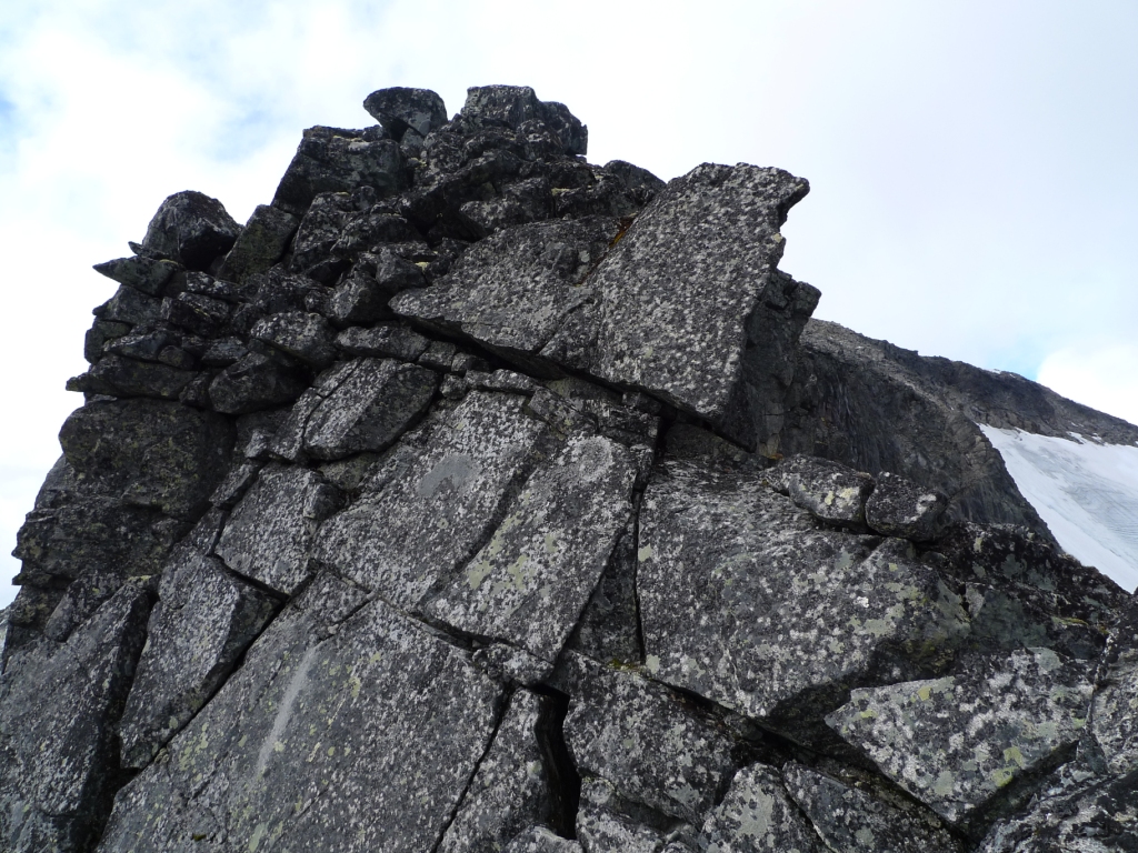 10. Den største skavelen gikk ganske nøyaktig kl. 10.15 dagen før. Da sto jeg noen hundre meter fra toppen på Veslefjeltind å så på at hele saken dundret ned på breen.. Jeg skvatt faktisk ganske så kraftig der jeg gikk helt i mine egne tanker, for det braket var ganske så voldsomt... Tidspunktet vet jeg så nøye fordi jeg tok et bilde akurat i det siste restene av snø raser utfor.