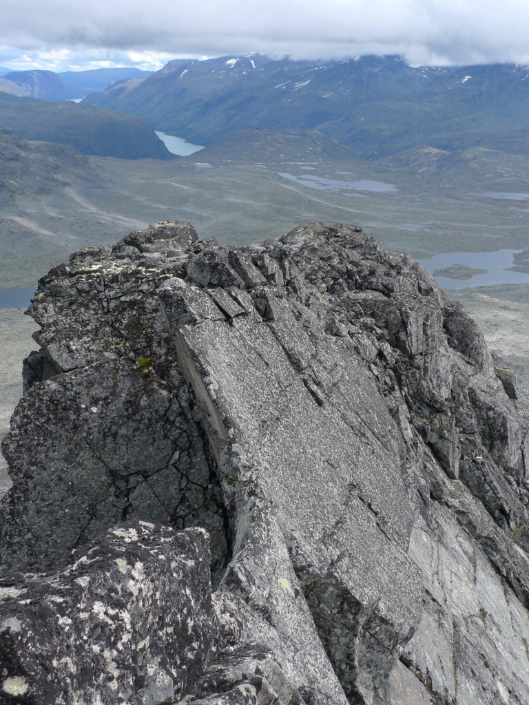 1. Tilfeldigheter denne morgenen ville det slik at utgangspunktet for turen ble Fondsbu i stedet for Torfinsbu som først ment. Siden turfølget også uteble ble det etter kort rådslagning med Solbjørg i solveggen på Fondsbu bestemt at dagens mål ble Snøholstinden. Huun hadde noen gode tips for å korte ned anmarsjen til dette gigantiske fjellet. Jeg fulgte gamle "poststien" over Gravafjellet opp til Grønebekktjernet før kursen ble lagt rett mot østsiden av Snøholstinden. Meningen var å gå opp normalveien på søreggen, men mens jeg gikk mot fjellet ble lysten på å prøve østeggen større og større. Kunne ikke huske å ha lest noe spesielt hvordan denne eggen var, men om det skulle bli for galt var det jo altid mulig å snu og gå opp under snøfonnen i østsiden, noe som så ganske greit ut. Turen opp til eggen på 1900 meter var ganske så morsom i seg selv ettersom mye av uren er av så grov stein at det til tider minnet mest om buldring. Godt å slippe den evige "Jotunheimenura" som haddde plaget beina den siste uken. Eggen så frisk men overkommelig ut hele veien oppover og den startet også ganske snilt med en koselig hammer som bød på fin klyving på blokker med god friksjon. Så ble det motorvei noen meter før den dramatisk smalnet av til noe av det smaleste og reneste jeg noen gang har sett i Jotunheimen. 8-10 meter med egg som var formet som en sal. Overhengt på den ene siden rett ned i breen og 30 meter med sva ned i en steinrøys på den andre. De siste meteren blir svaet brattere men eggen litt breiere. Hadde det vært vått hadde jeg snudd her, det er helt sikkert. Etter eggen er det noen flere meter med motorvei før en hammer reiser seg dramatisk og sperrer veien. Lysten til å returnere over eggen var heller liten så etter å ha sett og tatt litt på hammeren bestemte jeg meg for å prøve. Brukte 5 min på å knyte skolisser, drikke vann og senke pulsen. klatringen gikk veldig greit, takene var gode og friksjonen upåklagelig. Noen løse steiner er det så det er greit å ta det med ro og sjekke ut det man har ment å sette føttene på opp her. Resten av turen opp til toppen var enkel spasering i vår kjære Jotunheimenur... Turen ned nordvesteggen var en helt perfekt avslutning på en super tur. Fin klyving på forholdsvis fast stein og om man ikke er interesert i å gjøre det vanskelig er det stort sett altid fine omveier. Returen ut Mjølkedalen trenger vell ingen nærmere beskrivelse... Turen ble 23 kilometer og varte 8 timer T/R Fondsbu.