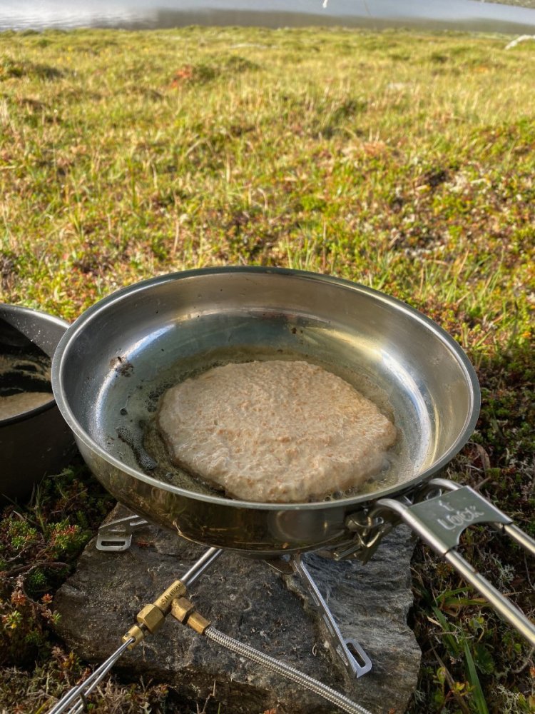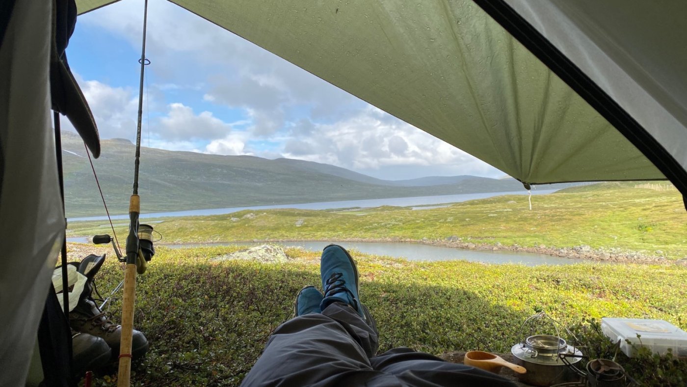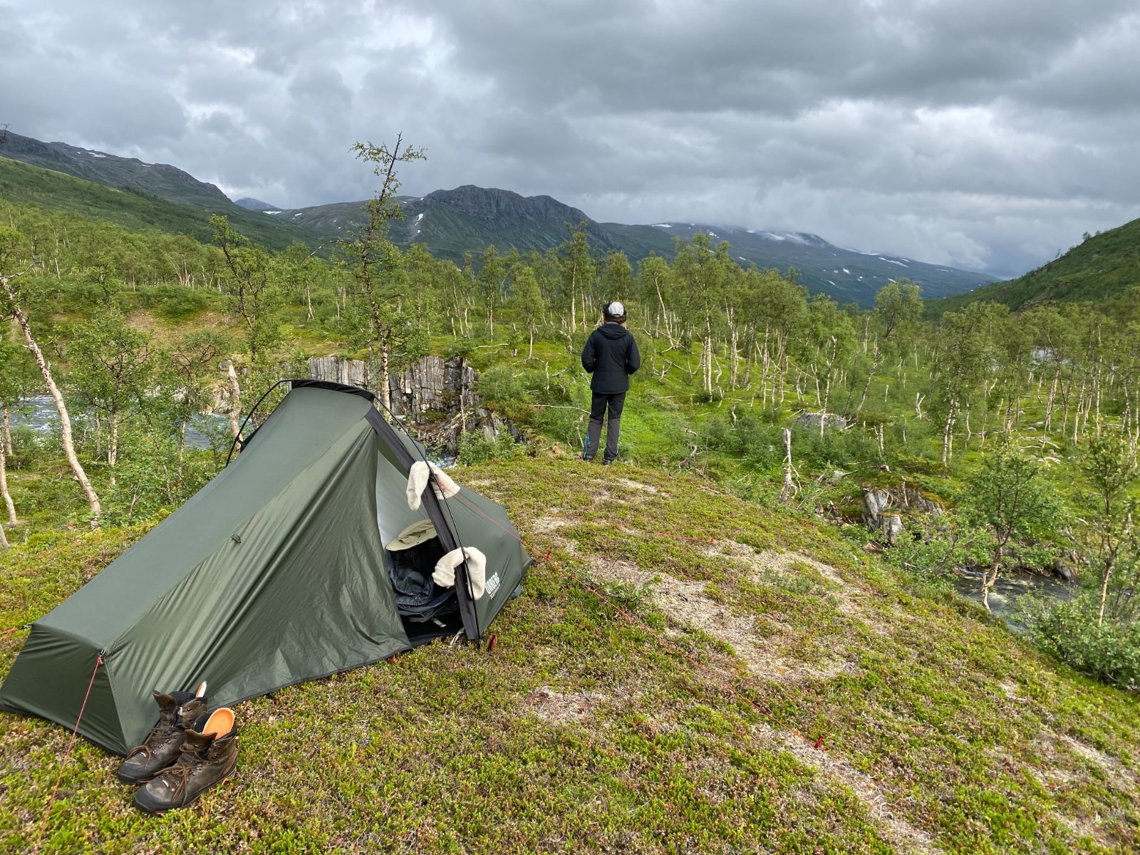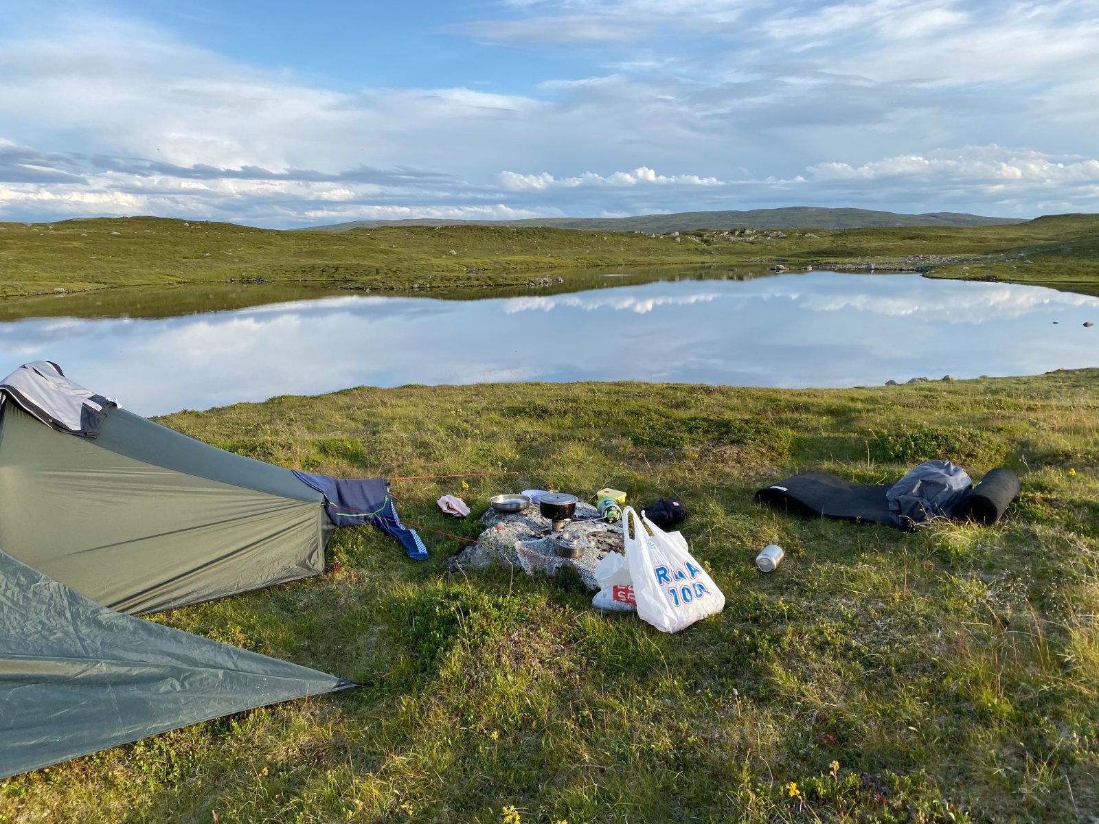 Da var det dus for turskildringen som jeg har tenkt lenge på å skrive. Det var de dager, sommeren 2021, jeg hadde min lange sommerferie. 2 måneder hvor jeg kjørte i min gamle yaris oppi nord. Planen var klar. Saltfjellet, og ikke minst, Børgefjell! Børgefjell har vært planlagt siden vinter 2019-2020. Grunnet høy elveføring sommer 2020 måtte vi utsette turen til 2021. Planen var og møtes på majavatn togstasjon fredag 30.juli. Jeg skulle gå turen med min gode venn Kyrre, men han ringte 1 uke i forveien og sa han hadde knekt et ribben. Da fikk det bli solo. Ila juli hadde jeg gått saltfjellet på langs (se turskildring), leid feriehus på Nesna, kjørt til tromsø, senja, og lyngsalpan. Nå var det bare å bunkre opp med mat, fyre madammen på toget til Oslo og hive meg oppover lia. Dag 1 - Grå kveld i simskardet. Det startet med å kjøpe frosne grønnsaker, karbonader og egg. Jeg skulle spise så mye jeg klarte før jeg dro innover. På perrongen til Majavatn stekte jeg 6 karbonader, 6 egg og grønnsaker og spiste med maria. Kl var 17 og toget gikk litt før 18. Det var kanskje 8 grader og vind og oppi heimen var det tåkete og lumskt. Jeg må si jeg gruet meg litt til potensielt 14 dager alene i noenlunde drøy villmark. Jeg hadde dagen før kjøpt mat for 16 dager og pakket sekken. Maria tok toget hjemover og jeg kjørte inn til simskardet. Parkerte, gikk over alt sammen og gikk oppover. Kl var vel kanskje 19.30. Planen var å gå 4km inn og sette opp teltet og starte tidlig. Jeg møtte på et hyggelig par som sa at simskardet åpnet akkurat så der var det bare å ta inn. Jeg kom til simskardet, gikk inn, slengte fra meg, drakk to øl utenfor og merket at det var litt for kjipt å sove i en nyoppusset hytte enn å være i det fri. Det ble for stille og isolert. Jeg pakket sammen kl 21.30 og gikk 1 km lenger opp til en nydelig furu med en kampestein foran. Her var første campen. Det var yr i luften og tåken lå tung i dalen. Dag 2 - Simskardhytta til Simskardvatnet. God natt søvn, tidlig morgen, grått i været men lett til sinns. Spise graut og begi seg oppover. Det må sies at det er svært befriende å gå etter kart og kompass i oversiktlige forhold. Så lenge nesegrevet ikke drar for mye til verken høyre eller venstre. Jeg bega meg oppover og planla å ende på sørsiden av vann. Det blåste godt fra vest så jeg formelig fløy oppover lia. Jeg var i god form og sekk med 30kg var ikke et problem. Jeg satt opp camp i 16 draget. Det var ikke drømmeforhold rundt vannet. En del humpete og vanskelig, men fant noe som dugde. Jeg følte meg alene og fri. Fisken beit ikke selvfølgelig men får skylde på vinden og det kalde været! Dag 3 - Simskardet til Gapsfjella. Etter å ha campet ned og en solid porsjon med havregraut og valnøtter dro jeg sydover mot gapsfjella. Planen var å dra til Ranseren og vurdere hva jeg gjorde derfra. Turen nedover var fabelaktig. Oversiktlig og fint med kvigtinden som hilste hele veien. Etter et par timer måtte Storskavlbekken forseres. Heldigivs var det lav vannføring denne sommeren så den tok jeg uten sko til og med. Lunsjen ble satt til livs her nede. Typisk lunsj for meg er 50gr nøttemiks, 50 gr kokesjokolade, 2 knekkebrød og 4 bixit kjeks. På toppen av gapsfjella var det dystert med litt tåke og regn i luften. Det var vel gjerne bare 5 grader på toppen, maks! Ved vann 1072 var det lite gjestmildt for telt. Men jeg fant en liten stripe med flatt gress, riktig posisjonert mot vinden så jeg var fornøyd. Mener å huske jeg var temmelig sliten da jeg satt opp camp denne kvelden. Brukte Urberg UL 1P med Mackenzie tarp som fortelt. Smørstekt pannebrød til frokost Dag 4 - Gapsfjella Ranseren. Det må ha vært minusgrader på natten siden vannet var blitt flakete i flasken. Men jeg hadde sovet som en stein i steinete landskap. Været var sånn halvveis. Jeg peilet meg mot vannene nedenfor Ratetinden. Da jeg kom til flåfjellet satt jeg fra meg sekken og løp oppover fjellet for å se om det var dekning for å si at jeg levde. På veg ned fant jeg ikke sekken. Jeg brukte en stor poncho med viddemønster som var over sekken. Den var ikke til å finne. Panikken begynte å sette seg men jeg fant sekken etter å rasjonalisere søket. Følte meg temmelig forbanna idiot der. Lunsjen ble inntatt med utsikt over dalen på veg ned til vannene nedenfor Ratetiden. Herrejemini der var det flott! Det bærte videre innover til Ranserbua. Jeg var sliten på dette tidspunktet ved bua. Jeg ville ta en natt her, men det var opptatt. Det så ut som noen skulle bo der over flere dager siden det såg relativt etablert ut. Jeg gikk mot ranseren, tok et dårlig valg hvor jeg gikk over elva og gikk midt mot elva. Det var kjempetabbe. Vanskelig og vått og tungt. Da jeg kom frem til enden var det attpåtil dårlig med teltplasser. Altfor kupert. Men igjen, fant jeg meg noe som dugde, og sovnetsom en stein. Tror jeg gikk nærmere 10 timer denne dagen, nesten uten pauser. Dag 5 - Hviledag´ish Idag var det tid for å hvile. Jeg følte meg bra etter en god frokost og lå under tarpen og smilte. Planen var å forsere elva med dagstursekk og gå langs sørsiden av ranseren og fiske. Bettet var meget dårlig til nå. Det var ingen fisk å få langs ranseren så jeg gikk opp til Monsens famøse navnløse 905 vann på svenskegrensen. Ikke et napp der heller etter 2 timers fiske. Men jaggu var det flott der! Dag 6 - Ranseren store kjukkelvatnet Jeg kan begynne med å si at det var unødvendig å gå dette strekket i ett drag. Det var langt! Samme vei tilbake i det kjipe terrenget fra Ranseren til reingjerdet. Jeg fikk hoppet over og gikk nordover mot Rotnan. Det var fint vær og lettgått terreng. Nydelig opplegg rett og slett. Lunsjen ble inntatt ved Rotnan. Ingen fisk dessverre. Jeg møtte på en liten gjeng som hadde vært ute i 10 dager allerede. De hadde kommet fra tiplingen og sa det ikke var like fint der grunnet ungbjørkeskogen. Jeg fikk sjokolade av dem 