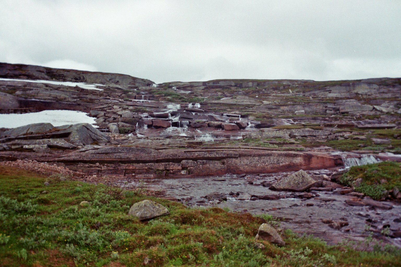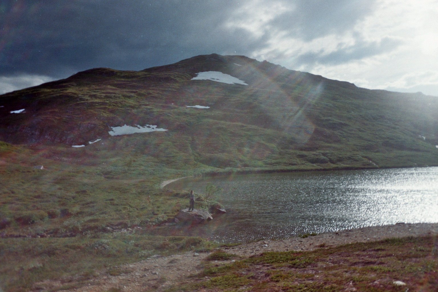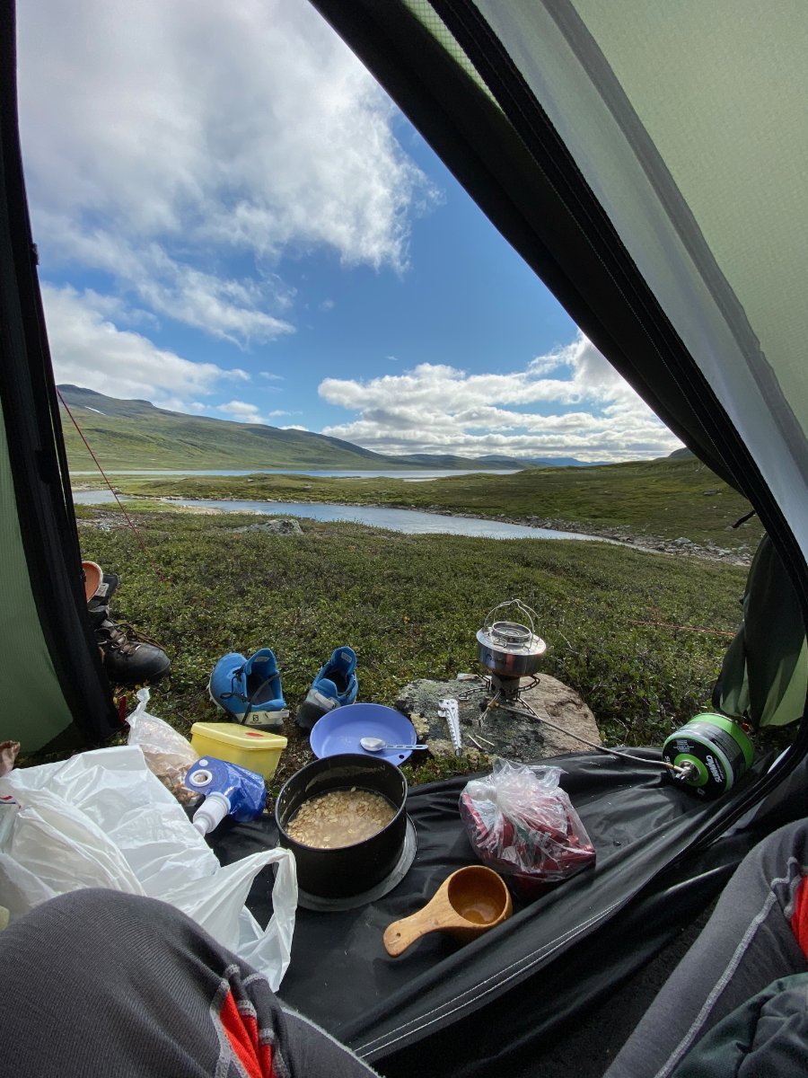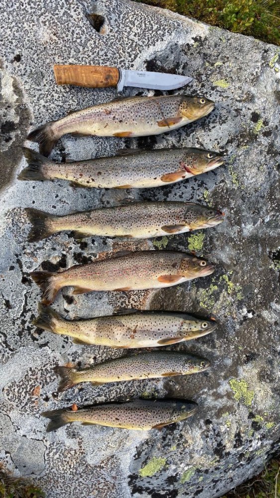 Da var det dus for turskildringen som jeg har tenkt lenge på å skrive. Det var de dager, sommeren 2021, jeg hadde min lange sommerferie. 2 måneder hvor jeg kjørte i min gamle yaris oppi nord. Planen var klar. Saltfjellet, og ikke minst, Børgefjell! Børgefjell har vært planlagt siden vinter 2019-2020. Grunnet høy elveføring sommer 2020 måtte vi utsette turen til 2021. Planen var og møtes på majavatn togstasjon fredag 30.juli. Jeg skulle gå turen med min gode venn Kyrre, men han ringte 1 uke i forveien og sa han hadde knekt et ribben. Da fikk det bli solo. Ila juli hadde jeg gått saltfjellet på langs (se turskildring), leid feriehus på Nesna, kjørt til tromsø, senja, og lyngsalpan. Nå var det bare å bunkre opp med mat, fyre madammen på toget til Oslo og hive meg oppover lia. Dag 1 - Grå kveld i simskardet. Det startet med å kjøpe frosne grønnsaker, karbonader og egg. Jeg skulle spise så mye jeg klarte før jeg dro innover. På perrongen til Majavatn stekte jeg 6 karbonader, 6 egg og grønnsaker og spiste med maria. Kl var 17 og toget gikk litt før 18. Det var kanskje 8 grader og vind og oppi heimen var det tåkete og lumskt. Jeg må si jeg gruet meg litt til potensielt 14 dager alene i noenlunde drøy villmark. Jeg hadde dagen før kjøpt mat for 16 dager og pakket sekken. Maria tok toget hjemover og jeg kjørte inn til simskardet. Parkerte, gikk over alt sammen og gikk oppover. Kl var vel kanskje 19.30. Planen var å gå 4km inn og sette opp teltet og starte tidlig. Jeg møtte på et hyggelig par som sa at simskardet åpnet akkurat så der var det bare å ta inn. Jeg kom til simskardet, gikk inn, slengte fra meg, drakk to øl utenfor og merket at det var litt for kjipt å sove i en nyoppusset hytte enn å være i det fri. Det ble for stille og isolert. Jeg pakket sammen kl 21.30 og gikk 1 km lenger opp til en nydelig furu med en kampestein foran. Her var første campen. Det var yr i luften og tåken lå tung i dalen. Dag 2 - Simskardhytta til Simskardvatnet. God natt søvn, tidlig morgen, grått i været men lett til sinns. Spise graut og begi seg oppover. Det må sies at det er svært befriende å gå etter kart og kompass i oversiktlige forhold. Så lenge nesegrevet ikke drar for mye til verken høyre eller venstre. Jeg bega meg oppover og planla å ende på sørsiden av vann. Det blåste godt fra vest så jeg formelig fløy oppover lia. Jeg var i god form og sekk med 30kg var ikke et problem. Jeg satt opp camp i 16 draget. Det var ikke drømmeforhold rundt vannet. En del humpete og vanskelig, men fant noe som dugde. Jeg følte meg alene og fri. Fisken beit ikke selvfølgelig men får skylde på vinden og det kalde været! Dag 3 - Simskardet til Gapsfjella. Etter å ha campet ned og en solid porsjon med havregraut og valnøtter dro jeg sydover mot gapsfjella. Planen var å dra til Ranseren og vurdere hva jeg gjorde derfra. Turen nedover var fabelaktig. Oversiktlig og fint med kvigtinden som hilste hele veien. Etter et par timer måtte Storskavlbekken forseres. Heldigivs var det lav vannføring denne sommeren så den tok jeg uten sko til og med. Lunsjen ble satt til livs her nede. Typisk lunsj for meg er 50gr nøttemiks, 50 gr kokesjokolade, 2 knekkebrød og 4 bixit kjeks. På toppen av gapsfjella var det dystert med litt tåke og regn i luften. Det var vel gjerne bare 5 grader på toppen, maks! Ved vann 1072 var det lite gjestmildt for telt. Men jeg fant en liten stripe med flatt gress, riktig posisjonert mot vinden så jeg var fornøyd. Mener å huske jeg var temmelig sliten da jeg satt opp camp denne kvelden. Brukte Urberg UL 1P med Mackenzie tarp som fortelt. Smørstekt pannebrød til frokost Dag 4 - Gapsfjella Ranseren. Det må ha vært minusgrader på natten siden vannet var blitt flakete i flasken. Men jeg hadde sovet som en stein i steinete landskap. Været var sånn halvveis. Jeg peilet meg mot vannene nedenfor Ratetinden. Da jeg kom til flåfjellet satt jeg fra meg sekken og løp oppover fjellet for å se om det var dekning for å si at jeg levde. På veg ned fant jeg ikke sekken. Jeg brukte en stor poncho med viddemønster som var over sekken. Den var ikke til å finne. Panikken begynte å sette seg men jeg fant sekken etter å rasjonalisere søket. Følte meg temmelig forbanna idiot der. Lunsjen ble inntatt med utsikt over dalen på veg ned til vannene nedenfor Ratetiden. Herrejemini der var det flott! Det bærte videre innover til Ranserbua. Jeg var sliten på dette tidspunktet ved bua. Jeg ville ta en natt her, men det var opptatt. Det så ut som noen skulle bo der over flere dager siden det såg relativt etablert ut. Jeg gikk mot ranseren, tok et dårlig valg hvor jeg gikk over elva og gikk midt mot elva. Det var kjempetabbe. Vanskelig og vått og tungt. Da jeg kom frem til enden var det attpåtil dårlig med teltplasser. Altfor kupert. Men igjen, fant jeg meg noe som dugde, og sovnetsom en stein. Tror jeg gikk nærmere 10 timer denne dagen, nesten uten pauser. Dag 5 - Hviledag´ish Idag var det tid for å hvile. Jeg følte meg bra etter en god frokost og lå under tarpen og smilte. Planen var å forsere elva med dagstursekk og gå langs sørsiden av ranseren og fiske. Bettet var meget dårlig til nå. Det var ingen fisk å få langs ranseren så jeg gikk opp til Monsens famøse navnløse 905 vann på svenskegrensen. Ikke et napp der heller etter 2 timers fiske. Men jaggu var det flott der! Dag 6 - Ranseren store kjukkelvatnet Jeg kan begynne med å si at det var unødvendig å gå dette strekket i ett drag. Det var langt! Samme vei tilbake i det kjipe terrenget fra Ranseren til reingjerdet. Jeg fikk hoppet over og gikk nordover mot Rotnan. Det var fint vær og lettgått terreng. Nydelig opplegg rett og slett. Lunsjen ble inntatt ved Rotnan. Ingen fisk dessverre. Jeg møtte på en liten gjeng som hadde vært ute i 10 dager allerede. De hadde kommet fra tiplingen og sa det ikke var like fint der grunnet ungbjørkeskogen. Jeg fikk sjokolade av dem 