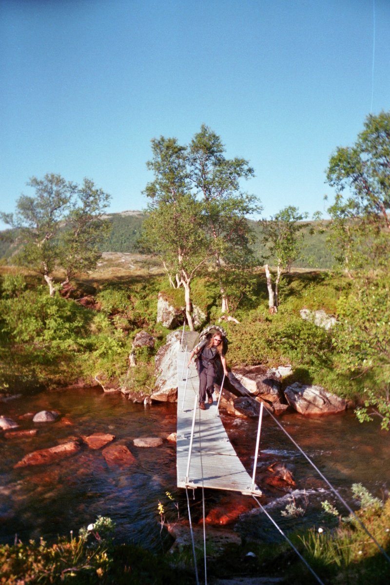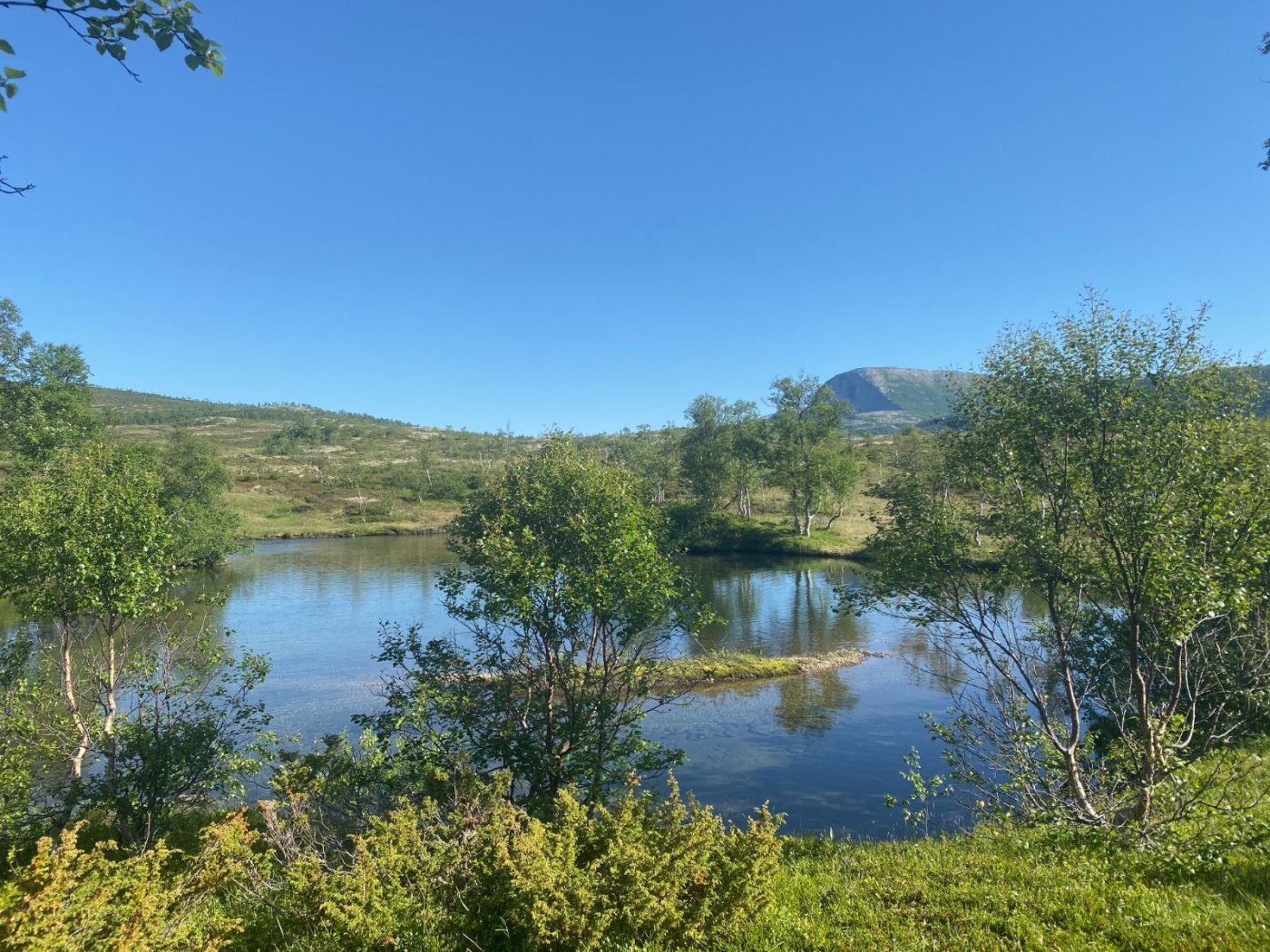 Jau, da var bildene fremkalt og mørket tilsier at skrivetid er på sin plass. Kartene er funnet frem og turen er mimret tilbake. Rapporten omhandler en tur over nydelige Saltfjellet! Jeg hadde planlagt fra julaften at jeg skulle ta en lengre ferie. 2 måneder var avtalt og jeg skulle tilbringe storparten i nord og oppdage nytt beite. Saltfjellet og børgefjellet stod for tur og min nykjøpte yaris 2006 modell med litt rust og sjarmlyder skulle føre meg dit. Jeg og min gode venn svartmetall-lasse skulle gå sammen. Vi har gått lange turen før sammen så det var ingen tvil om at dette skulle gå bra. Han kom fra Bergen onsdag 30. juni. Jeg hadde da min siste dag på jobben og vi pakket sakene våre. Vi gjorde storhandelen på Rema1000 vulkan og handlet mat for 12 dager. Matmessig ble det relativt likt som forrige langtur i femundsmarka, men med noen forbedringer selvsagt. Frokost; Havregrøt med valnøtter smør og sukker og kanel eller smørstekt pannebrød (beste absolutt). Lunsj; 50 gram kokesjokkis, 50 gram nøtter og frukt, 4 bixit kjeks og 3 knekkebrød med majones og saltpølse. Middag; tomatsuppe m makaroni og tørke pølse, potetstappe blandet med toro fiskesuppe og fisk, linser ris og tørke pølse. Målet var å spise 2500-3000kcal per dag. Gjerne mer! Sekkene veide vel rundt 30kg. For min del en knallfull 105 liter. Torsdag kl 14:30 tok jeg Covid vaksine numero unos og klokken 16:00 var vi kjørt. Om jeg ble dårlig ville jeg ligge ved et vann på Rondane på veg til bodø, ikke i en leilighet på Løkka og grine. Men jaggu gikk det fint. Vi campet først på muvatnet på Rondane, deretter kjørte vi grytidlig og kom oss til et vann mellom majavatn og trofors, Dagen derpå igjen kjørte vi til Bodø lufthavn, la igjen bilen på langtidsparkering og tok bussen til turens startpunkt Børelva. Dag 1 - Børelva- Lufjellhytta Vi hadde værgurdene med oss. Starten av Juli var nydelig i nord. 25 grader og knallsol! for en start. Turen langs børvatnet var fint med litt skygge mot den verste solen. Vi valgte forresten å starte her da vi trodde at turen gjennom Åselidalen ville bli for vanskelig med tung oppakning. Dette var jo selvfølgelig et bomvalg. Vi skulle gått mellom de magiske tindene, men det får rett og slett bli neste gang. Etter noen timers gange med badepause stoppet vi ved broen en drøy kilometer nord for lurfjellshytta. Her buktet elven seg og vi fant en nydelig campspott! Dag 2 - Lurfjellhytta-Trollvatnan Etter en grom frokost og myggsatanisme tok vi bena fatt til lurfjellshytta. Dette var den varmeste dagen uten tvil! Vi gikk forbi mange elvedrag med kaldt. frist vann vi dukket hodet i og dynket capsene i hele tiden. Turen gikk langs ryggen til lurfjellet og ned og over FV813 før vi traff tverrbrennstua. Lasse hadde ny sekk og måtte stille denne inn ofte denne dagen. Skuldrene var heller ikke vant med så tung oppakning så et par inngåingsdager trengte vi nå. Da vi kom til camp var vi veldig sliten" Dag 3 - Trollvatnan-Smågåsvatnan Minnes relativt lite fra dette strekket utrolig nok. Lasse fikk to små ørret vi stekte til potetmosfiskesuppen ala plukkfisk vi lagde ved siden av. Herlig! Dag 4 - Smågåsvatnan-Øver oksvatnet Dette strekket var veldig flott med ungbjørkeskog, over fjellpass og ned i daler. Myggen fulgte etter men det gikk selvfølgelig veldig fint! Vi campet ved utoset, fantastisk sted! Det ble med et bad her også! Dag 5 - Øver oksvatnet-Nordre bjøllåvatnet Denne dagen var eneste dagen med litt vind og regn. Forsåvidt helt forbanna greit etter 25 dager med svette og mygg. Vi gikk først til Bjellåvasstua. Her gikk vi inn og tok lunsjen. Kokte masse kaffe selvfølgelig. Videre bar det innom statskoghytte før vi fant en nydelig plass langs stiend sørvestlig ende. Det tok ca 5 minutter etter at teltene var oppe før det begynte å regne. Vi spente opp tarpen mellom teltene også slik at vi haddde en koselig oppholdsplass. Vi fisket masse men ingen napp. Mye vind kan ha forringet bettet! Møtte en kar senere på turen som sa at her må man ha tung sluk og kaste langt ut for å komme forbi mardjupet. Tips til følket! På kvelden satt jeg deigen som vi stekte til frokost. Dag 6 - Nordre bjøllåvatn-Bjøllåga (punkt langs elven mellom saltfjellstua og krukkistua.) Etter den beste frokosten på turen med smørstekt pannebrød (1 pers; 3 dl mel, 1,5 dl vann, salt, litt tørrgjær, bland sammen, la stå over natten, stek som tynne kaker 3 minutter totalt per side, 2+2+1+1) bar det videre sørover forbi søre bjøllåvatnet og nedover en nydelig topografi med flott fauna. Utsiktpunktene var heller ikke så verst med ungbjørkeskog langs bjøllådalen. Campen vi så fant var aldeles nydelig. Vi gikk av stien og fant et utkikkspunkt langs elven hvor den bukter seg. Dag 7 - Bjøllåga-Tespvatna Dette strekket var aldeles nydelig hvor vi også hadde fått skikkelig gåform. Stien tok oss nedover dalen og over passet til tespvatna. Ruten var preget av nydelige utsiktspunkter og flott fjellformasjoner rundt oss. Campestedet var også vakkert. Vi campet på vestsiden av vannet og støtte på flere turgåere som kom fra sivilasjonen nedi dalen. Dag 8 - Tespvatna-Bjøllånes Nå var det altså sjarmøretappen igjen. Det som var litt morsomt var at vi hadde gått turen 3-4 dager for fort. Planen var at min samboer skulle flyt til bodø, plukke opp bilen og hente oss på sørsiden av parken før vi skulle dra til sommerhuset på helgelandskysten. Den gang ei! Vi vurderte om vi skulle deige oss til i heimen i 3 dager eller om vi skulle ned, hente bilen på et vis og campe på sandhordnøy hvor jeg hadde vært en gang tidligere. Øl og saltvannsfiske fristet for mevet! Ned ble det! Veien ned var i og for seg grei, noe myrete men veldig ok. Vi støtte på en hyggelig jente som gikk alene. Hun hadde gått fra lindesnes siden 01.april. Målet var Nordkapp! Dødskult og veldig inspirerende! Rett før vi ankom sivilisasjonen slang vi av oss klærne, hopp