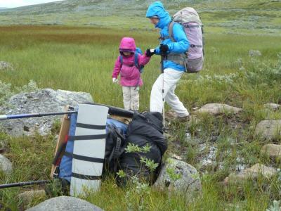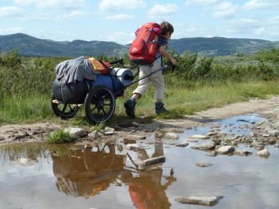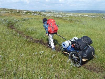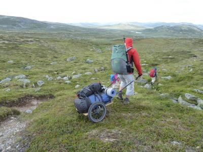 Hei på forumet! Jeg lurer på en telttur med barna våre (4 & 6) i Norden. Barna er gode til fots men det er klart at de ikke kan bære mye. Jeg og konen min kan ikke kompensere helt for det lille bæreevne av barna og derfor bruker vi en slags trillevogn (håndkjerre, sulky, pilegrimsvogn, careta) for telturer her hjemme. Slike vogner brukes også av ørkenvandrere, pilegrimer og folk som ikke lenger kan bære store og tunge sekker. Men jeg vil endelig gå på turer igjen i Norge (eller Sverige) og ikke vente til barna er blitt eldre og kan bære tyngre sekker. Den nåværende håndkjerren er basert på hjul av en barnevogn som gir nok bakkeklaring for de meste av turene våre. For turer med sterkere fjellkarakter en håndkjerre med mere bakkeklaring burde konstrueres (med 16” eller 20” hjul). Mitt spørsmål til forumet her: har noen av dere erfaring med bruk av håndkjerrer eller lignende for bagasjetransport på teltturer i Norden? Hvilke områder kunne være egnet for bruk av en håndkjerre? Pilegrimsleden ville sikkert være en mulighet, men den går litt for mye langs store veier, bebyggelse osv. og kunne derfor kanskje bli litt kjedelig. Jeg kunne også tenke meg Rallarvegen, den østlige Hardangervidda eller forskjellige steder i Rondane, men det var i et annet liv jeg var der sist, så hukommelsen min er sikkert blitt litt grumsete etterhvert. Jeg ville glede meg over alle slags tips, ideer (og advarsler). Tusen takk & hilsen Philipp