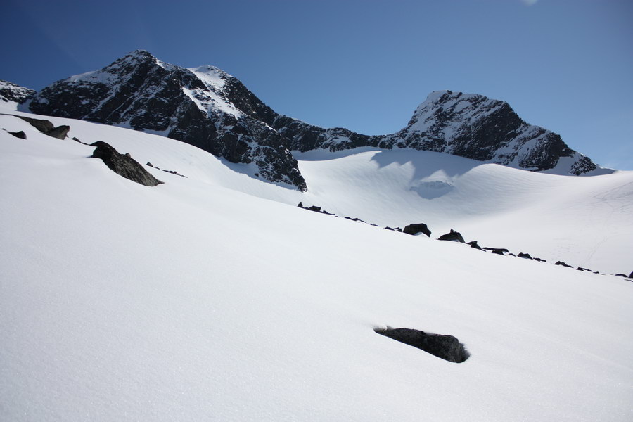 Flotte forhold no, var på Store Ringstind på lørdag som var, droppa Midtre grunna sure lår og stegjern som låg igjen i bilen. Derimot var det to stykker på vei opp midtre når vi retunerte nedover breen. Er dog ein del mindre snø enn i fjord, og vist varmen fortsetter så vil eg tru det smeltar fort i enden av Ringsdalen!