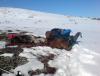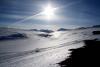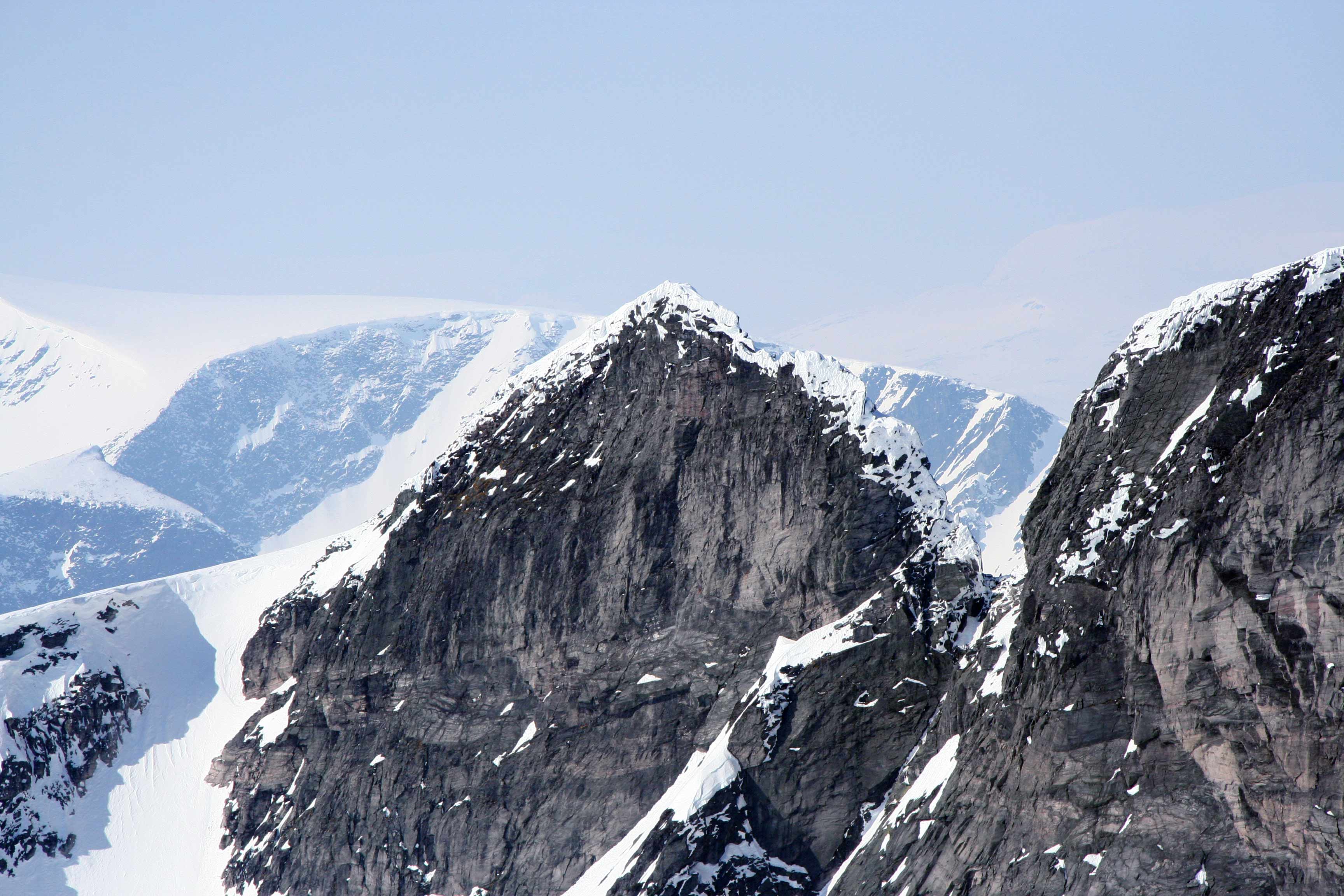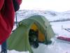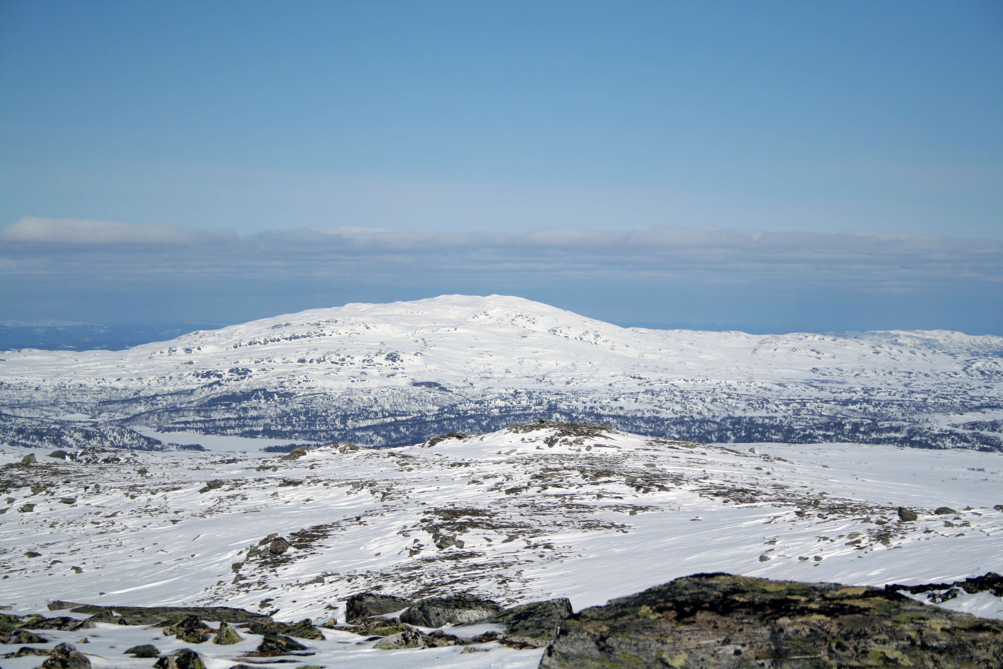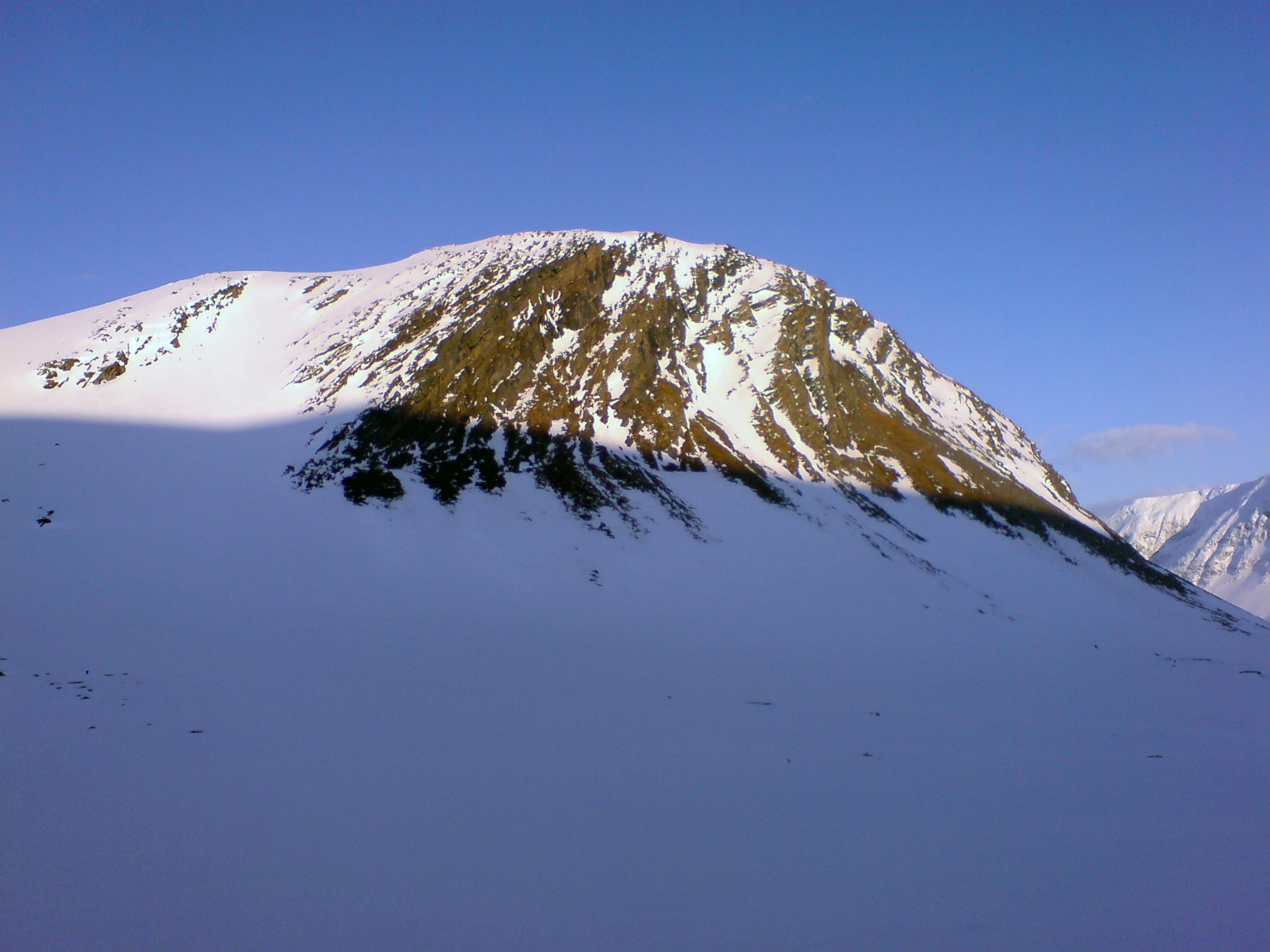 Har brukt de siste 2 timene av kvelden til å prøve å ikke la irritasjonen over "skytefeltet" på Hjerkin gå utover rapporten, og skal prøve å ikke nevne det...... Endelig ble det torsdag, og det var klart for nye eventyr. Værmeldinga var, som vanlig, strålende, og Snøhette var målet. Hadde ikke bestemt meg for hvor vi skulle starte, men hadde flere alternativer. Kongsvold, Grønbakken & Hjerkinn, men skulle forhøre meg ang forholdene først. Kjørte fra hjemmefra ca 10:30 , og kjørte hjemmefra igjen ca 1050. Hadde glemt GPSn, og måtte hente den. Oppdal var førset mål, og der skulle jeg kjøpe nye frontfester til fellene. har G3 exp.skins, men frontfestet er litt i breisete laget, slik at ved løs og tung snø, så kommer det lett snø melleom fella og skisålen. Gutta på MxSport på Oppdal fiksa det, og gav meg tips om å starte fra Hjerkin. I og med at jeg skulle drasse på pulken, ville det være en mye lettere rute. Da valget ble tatt, var så Snøheim neste mål, og teltet ble pakket ned i pulken sammen alt annet jeg skulle ha med. I min iver ettter å komme avgårde, la jeg ingen plan for turne, annet enn at jeg skulle gå "rett frem, samme hve jeg støtet på". Dvs korteset vei til Snøheim. Klokka hadde rukket å bli 14:30 da jeg tok de førset takene ut fra parkeringa ved Skyteadm., og allerede etter ca 100m, ante jeg konturene av en tung tur. Snøen var pill råtten, bløt, og det var et slit fra førset stavtaket. Jeg slet meg over Haukbergsmyrin, med kurs for Svanålægeret, og må ærlig innrømme at det gikk på motivasjonen løs. Til tross for breie ski, 78-56-60, så ble det en kamp mot alle de kreftene som ville skia mine til livs....Vel fremme ved en barflekk ved Svanålægeret, ble det en skikkelig pause, og klokke hadde rukket å bli "fantastiske" 17:30. Sola steika godt ennå, og både jeg og Phil, tok oss en dupp i solen....30 min senere var det på`n igjen, og vi fortsatte videre. Vi fulgte skispora , og fulgte Stridåi-dalen opp den siste biten. Da vi endelig kom frem til Snøheim var klokka ca 20:00. Dvs 5,5timer på ca 13-14km. Teltplass ble etablert, og så var det bare å sette i gang med snøsmelting. Vi spiste kveldsmat, og Phil slukna ca 21:30, mens jeg måtte nyte kvelden og knipse litt bilder. Det var et nydelig vær, og ikke et vindpust, og det lå an til å bli en kald natt. Og kald natt ble det, men jeg lå trygt og varmt inne i min Helsport Raudfjorden i bare undertøye, mens Phil lå som vanlig på dunjakka. I tillegg hadde vi både reinskinn og 14mm underlag, så vi hadde ingenting å sutre over. Neste morgen våkna jeg allerede ca 5:30. Måtte ut å sjekke forholdene, og som ventet, iskladt. Sola var på vei opp, og foran meg stod Snøhettamassivet og ventet på oss. Vi skulle opp på Stortoppen, og det skulle vi gjøre tidligst mulig, slik at forholdene skulle være best mulig. Ca 7:30 satte vi kursen for Snøhetta, og tror du fa...meg ikke at snøen var like råtten her, som lengere nedenfor Snøheim. Turen bortover forbi Stridatjørning og mot stigningen brukte vi nesten en time på, og turen fra i går satt godt i kroppen. Da vi begynte å "klatre", ble det litt bedre forhold, men tungt var det uansett. Vi tok en pause på ca 1700moh, og noe unødvendig utstyr ble lagt igjen. Vi fortsatte videre oppover, og flere og flere "konturer" av fjell snek seg frem. Det så ut til at Snøhetta var det eneste fjellet som ikke lå inne i morgendisen... Ved 1900moh, ble det en ny pause, og her ble det helt seriøst vurdert å bryte. Beina var helt døde, og vi hadde dårlig med drikke igjen. Men det ble raskt besluttet at her skal vi jammen meg ikke gi oss nei. Like ved der "stiene" fra Snøheim & Reinheim møtes, ble skiene satt igjen. Det så ut til at det kunne bli litt kronglete nedkjøring, og jeg fortsatte uten skia. I og for seg et greit valg, men fra ca 2000moh og oppover, ble det litt "fokkete" og jeg sank litt ned for hvert steg. Jeg syntes jo at stigningen opp Langfjellet var lang og bratt, men denne var ikke noe dårligere den heller. Jeg måtte virkelig jobbe med motivasjonen, og vi kom oss til topps ganske så nøyaktig klokka 9:47. Da hadde jeg ca 0,5liter vann igjen, som vi delte broderlig. Det første som slo meg da jeg var opp, var : Dette kunne jeg ha spart meg....maken til drittfjell.......og hvilken IDIOT har plassert hytta si her ????!!!!! For å være litt seriøs så må jeg ærlig innrømme at Snøhetta ikke vil havne blant mine favoritter. Selve toppen er jo totalt ødelagt av "hytta", fjella rundt er ikke av de helst spektatuklære, og desuten var føret bedritent.....men det skal ikke ødelegge følelsen av å stå på toppen av det høyste fjellet utenfor Jotunheimen. Slik jeg ser det er Snøhetta vakrere jo lengre unna den du er...men her er det vel mange som er uenige, og det er jo helt ok for meg. På toppen ble det lett etter motiv, men den berømte disen lå rundt over alt, med unntak av de aller nærmeste. Da vi hadde fått tatt de vi trengte og skrevet oss inn i boka, satte vi kursen nedover igjen. Nedturens høydepunkt var selvfølgelig å få kjørt en del telemarksvinger nedover, og ca klokka 12:00 var vi tilbake ved teltet ved Snøheim. Der ble det en liten pause, og vi spiste litt lunch. Pulken var pakket og klar til avgang ca 13:30, og planen var å skli ned på ca 1,5timer. Hadde håpet at sola ikke hadde fått gjort nok skade for dagen, men der tok jeg feil. Snøen var håpløs, og Phil gikk gjennom hele tiden. Jeg bestemte meg derfor for å følge veien ned og tilbake til bilen. Veien var delvis snøfri, og der det lå litt snø, ver det mye fastere, så Phil ikke gikk gjennom. Dermed kunne ha bruke vegen, mens jeg gikk på ski utenfor. De første 3-4km gikk kjempegreit, men etter hvert føltes det ut som om vi gikk, og gikk, og gikk, og gikk, uten at noe kom nærmere. Og de siste 2-3km, var snøen pill råtten. Tilbake til bilen ca 15:30, hadde vi vært "borte" i 25 timer, og GPSn viste 41km. I bi
