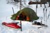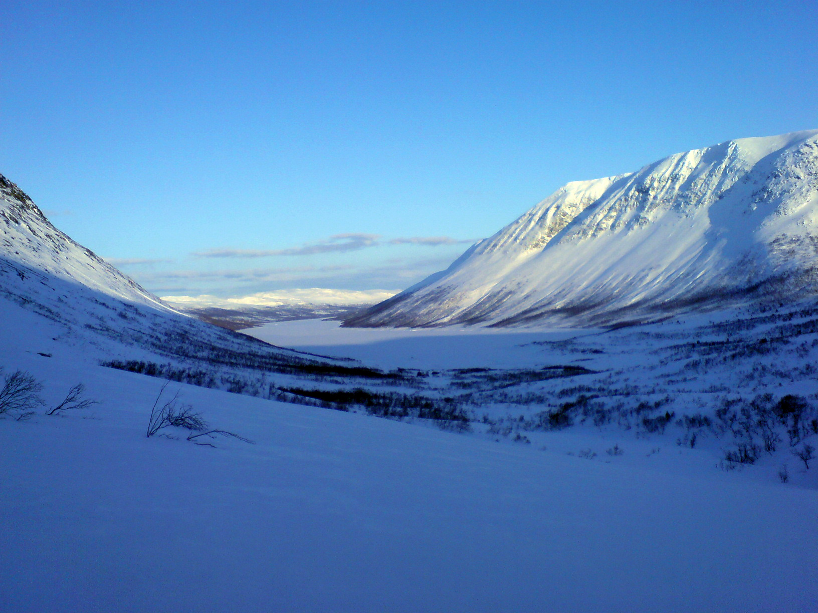 Fredag morgen var yr.no det førset som ble sjekket. Problemet var bare at det stort sett var sol "overalt", og det dermde plutselig ble vanskelig å bestemme seg for hvor man skulle dra. Snota var et alternativ, men var litt usikker. Utstyr ble pakket inn i bilen, og vi satte kursen sørover mot Oppdal & Trollheimen. Hvor, det var ennå uklart. Vi kom oss ikke avgårde før ca 10, og svingte inn på MX Sport ca 11:30. Der ble kartsamlingen utvida, og jeg fikk et godt tips fra en av gutta i butikken. Jeg hadde sett for meg vassendsætra som mål, men var litt usikker på hvor jeg skulle starte. Jeg ble anbefalt å kjøre inn til Bårdsgården, og gå derfra og over til Gjevillvatnet og Vassendsætra. Det skulle være en fin tur med god utsikt både mot Innerdalen og Gjevilvasskamman. Ca klokka 13:30 var pulken lastet opp med det man trenger, og "ikke trenger", og vi satte kursen oppover. Phil, labradoren min, hadde brukt ventetida flittig, og sjarmert ei elghundtispe i knestående før vi dro. Været var strålende, og alt lå til rette for en skikkelig kosetur i sola. Fellene var klar til innsats, og de fikk jobba bra oppover fra Bårdsgården. Det gikk ganske bratt oppover hele tida, men det var utrolig vakkert. Ikke et eneset vindpust, og sola bokstavelig talt stekte bak på ryggen. Lua, votter, jakke fikk vile seg på pulken, og det var deilig å kunne "spasere" kun i undertrøya, og bukse. På vei oppover så vi flere ryper som tok av, og etterhvert som vi kom stadig høyere så vi Storsalen bade seg i sola, sammen Innerdalsfjella og en hel del andre fjell i det fjerne. Vakkert var det i allefall. Som alltid hadde jeg med meg mer enn nok, og skjønte ganske raskt at her var det bare å ta det med ro. Vi hadde all verdesn tid, og skulle tross alt bare gå drøyt 5 km. Hadde jeg hatt shortsen med, ville nok den ha blitt brukt. Ca halveis kom vi til "toppen" og fulgte derfra scootersporene ned mot Gjevillvatnet og etterhvert Vassendsætra. Med Okla på høyre side, og Gjevillvasskamman rett i mot oss, var det et flott syn på vei nedover. Føret var flott, og det var rett og slettt ingenting å sette fingeren på, foruten at batteriet i kameraet lå igjen til lading hjemme...så mobilen måtte brukes. Ca klokka 15 var vi fremme på Vassendsætra, og der traff vi et par som hadde med seg ei labradortipse som het Frida. Phil falt pladask for Frida, og bruket de neset 2 timene på henne. det var helt ok, for da fikk jeg sette opp teltet i fred...noe som er mye enklere enn å få hjelp av en labrador, som ikke kan vente med å hoppe inn i innerteltet mens jeg fester det. Da alt var rigget, ble det tid for middag, og som vanlig stod Real Chicken Sweet & Sour på menyen. Middagen ble inntatt i solveggen på sætra, og ettermiddagsola varmet skikkelig. Etter middagen tok vi oss en bitteliten lur,før vi gjorde oss klar til en kveldstur. Målet var å gå opp mot Hyttbekkdalen, som ligger mellom Gjevilvasskamman og Hyttdalskammen. Derfra kunne vi kanskej få øye på Neådalsnota og evt andre flotte fjell i kveldsola. Turen oppover var litt brattere enn først antatt, men fellene kom nok en gang til sin rett, og vi gikk til vi kom til Hyttdalstjønnin. Derfra kunne vi nyte synet av en hel haug med fjell som badet seg i kveldsola. Da vi skulle gå tilbake, ble fellene tatt av, og til tross for at det var litt hard, ble det en fin nedkjøring med mange svinger. Ikke så vi snurten av andre spor heller, så det var flott å se sporene da vi kom et stykke ned. Vel fremme ved teltet, fikk vi med oss de siste solstrålene før sola forsvant ca 2030. Okla og Hovannshytten, holdt vel ut lengst, før sola ble borte. Månen hadde vært oppe en stund, og eterhvert som det ble mørkere, lyste den opp ganske så bra. Himmelen var fylt med stjerner, og uten så mye som et snev av vind, ble det en utrolig vakker kveld. Det lå i kortene at det kom til å bli kaldt om natta, men det bekymret meg lite. Kuldegropa var forlengst etablert, ogmed teltet fullt av liggeunderlag(2stk HelsportJerven, 1 stk reinskinn og 1 stk Therm a-rest Toughskin, pluss en Helsport Raudfjordenpose, så jeg ingen grunn til bekymring. Phil la seg på dunjakka mi, og utenfor hørte vi rypene som "tuslet rundt og sang" i nærheten. Neset morgen våknet vi ca 730. Tempen i teltet var ikke all verden, og ute var det ganske kaldt. Jeg hadde glemt igejn en 1.5liter pepsimax i forteltet, og den var gjennomfrosset. På innsiden av ytterteltet var kondensen spekt. Jeg fyrte opp primuslampa, og det gikk ikke lange tiden før temppen i teltet steg betraktelig. Evt kondens/rim forsvant kjapt, og vi var klare for frokost. Som seg hør og bør på bble det som vanlig panekaker, med bøåbærsyltetøy og bacon...mmmmm. Ute var det overskyet, og sola prøvde å presse seg gjennom...uten at den lyktes med det. det var fortsatt vindstille, og tempen var såpass høy at det var ikke nødvendig med dunjakka lengere. Vi besetmte oss for å pakke sammen og sette kursen tilbake mot Bårdsgården igjen. Vi fylte ut nødvendige papirer inne på sætra, og sa farvel til Frida m/familie. Turen tilbake var mye lettere å gå, men det ble en frisk nedkjøring mot Bårdsgården. Til tross for at vi hadde spist og drukket godt, fikk pulken ganske så stor fart, og lå bak å pressa på hele veien. Underlaget var ganskle hard, men ikke skarete, så lårene fikk kjørt seg ganske bra. Uten nevneverdige uhell, var vi tilbake på Bårdsgården fikk laset alt inn i bilen, før vi satte kursen hjemover igjen. Turen var flott fra ende til annen, og et godt bevis på at man ikke på død og liv trenger å gå så langt for å få flotte opplevelser, og at jeg nok en gang fikk erfare at mye av det som var i pulken kunne ha vært igjen i bilen. Neset helg ligger det an til at vi legger turen til Innerdalen.