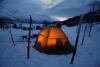 Her et Canon 350D, som har vært med litt overalt. Senest på torsdag da jeg lå i telt ved Snøheim på Dovre, og gikk opp på Snøhettta på fredag. Det var vel 10-12minus på natta, men kameraet tok ingen skade av det. Har ikke opplevd at kameraet har svikta ennå, og det har opplevd litt av vært. Når det er kaldt, bruker jeg som regel å ha batteriet i ei lomme inn mot kroppen, slik at det holder seg lengst mulig, og har med ekstra batteri. Har riktig nok aldri fått bruk for ekstrabateriet, men det er nå som regel med. Når det gjelder kondens, så blir det jo litt på linsa hvis jeg evt tar det ut av kamerabagen spesielt tidlig på morgenen, men da putter jeg det ned i soveposen, eller "varmer" det litt rundt primusen, så forsvinner kondensen. Den størset utfordringen, er vel å holde linsa ren, og det er fort gjort å bli lit ivrig, og tørke bort kondensen på linsa, men det lønner seg ikke. La heller kameraet få "tatt seg igjen" selv. Har vel hatt snart 20 netter i telt løpet av vinteren, og har et Helsport Trollspiret II. Vær og forhold har variert i fra 10-15 minus, til 8-10 plussgrader, og bildene er alltid like "gode". Det er i allefall ikke kameraet det er no feil med. Tror nok de fleste speilreflekskameraene tåler en støyt , og at det skal mye til før det streiker. Men jeg passer selvfølgelig på det, og det ligger ikke å slenger rundt i teltet, men som regel i fotobagen, og kanskje også inni en sekk, bag eller klær etc, når det blir skikkelig kaldt. Så det jeg egentlig bare skulle si var at speilrefleks i telt om vinteren går bra....
