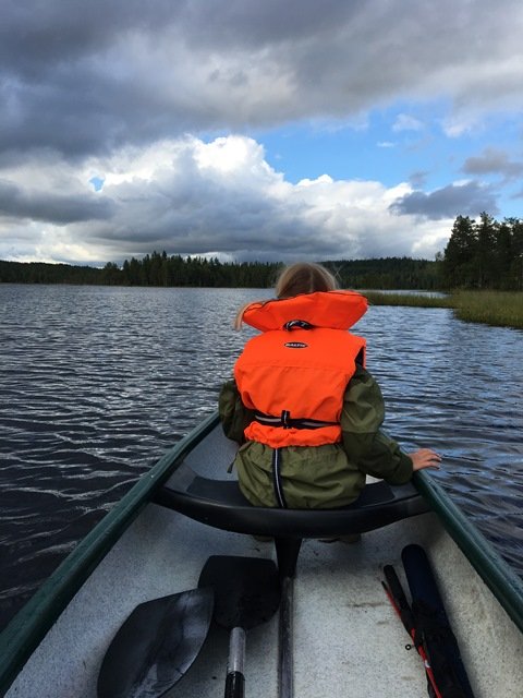 Siste helgen før første skoledag tok jeg med Eva (6 år) på tur i Romeriksåsen, Vi har 8-10 turer i Nordmarka og langs fjorden bak oss og ville prøve et nytt område - og en ny turform. Så vi leide kano via Finn.no og la i vei fredag kl 1500. Vi valgte Storøyungen etter tips fra venner, man kan kjøre helt frem og det er et passe stort vann for en kanotur. Det var mye folk der den helgen - men de var stort sett på veisiden mens vi var for oss selv på en fantastisk odde med bålplass, grei teltplass og masse blåbær. Merkelig lite døde trær i skogen rundt om, vi måtte lete nærmere en time før vi fant passe bålved. Fordelen med kombinasjonen kano og kjøre helt til vannet er a man kan ta med seg ALT - inkludert en stor presenning og masse tau og ekstra teltstenger. Og bra var det for det BØTTET ned natt til lørdag. Nå har jeg definitivt bestemt med for en gjør-det-selv-tarp som vinterprosjekt! × Du har limt inn tekst med formatering. Fjern formatering Vi ble på samme stedet til søndag, Evas første to-netters tur og MYYYE viktigere: Evas første ørret. Den smakte helt tipp topp med smør, salt og pepper. Neste tur er allerede om to uker, denne gangen til fots i Nordmarka.