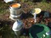 Også i fjor dro jeg på fjellet alene, en tur som ble litt ampurtert i forhold til planlagt . Som dere etter hvert vil skjønne så blir det litt "learning by doing", så får dere skikkelig garvede fjellfolk trekke på smilebåndet . Da var det igjen tid for ”årets tur”. I år føltes det veldig mye senere på året enn i fjor, selv om det var samme dato, 21.september . Grunnen til det, er nok at vi ikke har hatt sommer i år, så høsten kom på en måte før. Hvor jeg skulle dra, var en tilbakevendende utfordring. Det ble også i år tatt litt på sparket og endte på Kalhovd. Sjekket ut på nettet og det skulle ta 3,5 timer å kjøre. Etter erfaring i fjor, blir det mørkt 20:00. Så for å rekke å komme fram og finne plass i tide, tok jeg en halv dag ferie på jobben og dro 12:00. Jeg kjørte mye av den samme ruta som i fjor bare en del lenger. Øst for Rjukan ligger det et sted som heter Atrå. Der stoppet jeg og handlet litt mat og ”lang under ” på tilbud til 50,-. Fant den nemlig ikke da jeg pakket dagen før. Derfra går det en heller dårlig og trang vei opp på fjellet/hardangervidda. Den gikk 3 mil før man kom til Kalhovd turisthytte. Den ligger 1100 m.o.h. og er et utgangspunkt for mange turer. Bilveien fortsetter derfra enda lenger og jeg fulgte den i ca 6 km før jeg parkerte. Det ble der hvor Kalhovdfjorden streifer Mårvannet. Veldig vanskelig første gang man er et sted å finne den beste plassen å slå leir. Det tok ca 40 minutter å gå fra bilen og til leirplass. Derfor var ikke teltet satt opp før 18:30. I god tid til å lage middag før mørket i hvert fall. Middagen besto av tomatpølsegryte med 2 stk røkte kjøttpølser i, som smakte fortreffelig. Jeg liker å ligge nær vannet, så det ble vel 5 meter unna denne gangen også . En litt merkelig ting jeg oppdaget da jeg skulle tenne på stormkjøkkenet, var at rødspriten hadde ligget så lenge i beholderen at den ikke tente mer! Vi har jo bare brukt det store stormkjøkkenet de siste årene, så den må ha ligget der flere år. En annen utfordring for å kunne holde kontakt med omverdenen var at det måtte være mobildekning (kona må ha livstegn ), og det var faktisk full dekning der jeg lå. Etter middag var det å orientere seg litt i nærområdet. Det skulle vise seg at det var et par ting jeg ikke hadde tenkt på i år, hastverk er lastverk. Det ene var at jeg lå jo over tregrensa, så å lage bål ville bli en utfordring. Jeg fant vel 2-3 halvvåte plank et sted, så det var ikke mye å skryte av. Men hvis jeg fikk fisk, skulle jeg vel klare å fyre opp noe småtteri. Det andre jeg ikke hadde tenkt på, er at så høyt så sent på året, kan været være litt så som så. Det skulle jeg oppleve i løpet av natten. Ca 20:00 ble det som sagt mørkt så da krabbet jeg inn i teltet for kvelden. Da ble det å tenne lys og ligge å høre på radioen. Det begynte også å blåse da, og det ble bare verre og verre. Jeg var ganske trøtt og sliten så jeg prøvde å legge meg til å sove 21:00, men da blåste det så mye at jeg lurte på om teltet skulle fly av gårde. Det begynte å regne også, samt at jeg hadde gått litt lenge med for lite klær så jeg klarte ikke helt å få varmen. Dette endte i at jeg lå og småfrøs og ventet på å få teltet i hodet. Det ble mye smådurming denne natten, og jeg husker best da det midt på natten begynte å tikke på en annen måte enn regn. Da begynte det å snø, og jeg så for meg at jeg ble liggende værfast der : . 07:30 neste morgen sendte jeg en melding til kona hvor jeg ba henne sjekke været, da spesielt vinden. Det blåste nemlig like mye, og jeg hørte på radioen at det var stiv kuling. Selv om det var sol så ville 2 grader og stiv kuling bli i kaldeste laget. Etter en stund, fikk jeg melding tilbake om at det var meldt bra, og bra ble det. Solen strålte og vinden løyet såpass at det var deilig å sitte i teltåpningen og nyte. Livet så litt lysere ut… Frokosten besto av 5 stk skiver med makrell i tomat på tube. Veldig godt og enkelt på tur. Jeg la også 2 stk øl ned i en liten bekk, som skulle nytes når det passet sånn. Jeg hadde i år med en liten sekk i tillegg til den store, for å kunne dra på litt småturer. Den pakket jeg med kaffe, sjokolade, kikkert og fiskesaker. Kalhovdfjorden er en forholdsvis stor fjord, så fisket burde være greit. Men fisken skal som kjent ikke være lett å få has på. På veien bort til teltplass dagen før, hadde jeg stoppet og snakket med en i ei hytte. Han satt og renset flere garn. Det sto nemlig ved turisthytta at det ikke var lov å bruke annet enn stang i fjorden. Han sa at fiskekortsesongen var over for i år. Jeg sto og fisket bortover vannet og måtte kaste mellom alle garnene som var satt. Etter en del kast og noen sjokoladebiter, kom det en båt bort med 2 karer. Det skulle vise seg at den ene av dem var grunneieren. Fikk da beskjed om at det ikke var lov å fiske mer der. Jeg lurte da på om det kom av alle garnene, men fikk ikke noe vettugt svar. Da dro jeg litt på det og spurte om det skadet at jeg kastet litt. Han sa da at jeg tømte vel ikke fjorden, og smilte. Hans samtykke skulle ikke hjelpe. Nappet uteble… Da sulten begynte å melde seg, gikk jeg tilbake til standplass og laget meg en velsmakende nuddel. Satt meg så i skråningen nedenfor teltet med liggeunderlaget og koste meg i solen. Nesten så jeg kunne sovne. Så begynte det å skye på, igjen. Og etter hvert skulle det begynne å regne, igjen. Til å begynne med var det ikke alverdens med nedbør men det økte på etter hvert. Det ble såpass at jeg måtte inn i teltet for å holde meg tørr. Etter å ha sittet stille en stund, kjente jeg snev til litt hutring igjen og skyene og regnet skulle ikke bli borte med det første skjønte jeg. Da slo tanken meg. Skulle jeg måtte sitte i teltet resten av dagen og småfryse med frostrøyk ut av munnen? Jeg begynte å pakke sakene mine, og følte en lettelse da jeg så bile