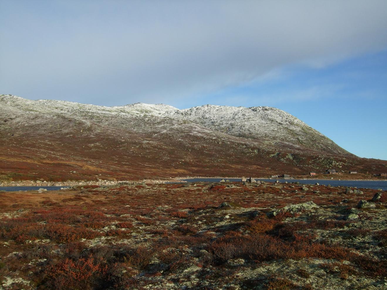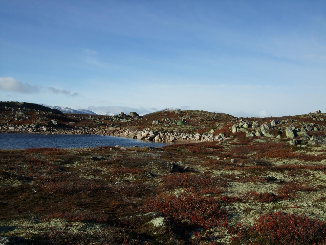20. Også i fjor dro jeg på fjellet alene, en tur som ble litt ampurtert i forhold til planlagt . Som dere etter hvert vil skjønne så blir det litt "learning by doing", så får dere skikkelig garvede fjellfolk trekke på smilebåndet . Da var det igjen tid for ”årets tur”. I år føltes det veldig mye senere på året enn i fjor, selv om det var samme dato, 21.september . Grunnen til det, er nok at vi ikke har hatt sommer i år, så høsten kom på en måte før. Hvor jeg skulle dra, var en tilbakevendende utfordring. Det ble også i år tatt litt på sparket og endte på Kalhovd. Sjekket ut på nettet og det skulle ta 3,5 timer å kjøre. Etter erfaring i fjor, blir det mørkt 20:00. Så for å rekke å komme fram og finne plass i tide, tok jeg en halv dag ferie på jobben og dro 12:00. Jeg kjørte mye av den samme ruta som i fjor bare en del lenger. Øst for Rjukan ligger det et sted som heter Atrå. Der stoppet jeg og handlet litt mat og ”lang under ” på tilbud til 50,-. Fant den nemlig ikke da jeg pakket dagen før. Derfra går det en heller dårlig og trang vei opp på fjellet/hardangervidda. Den gikk 3 mil før man kom til Kalhovd turisthytte. Den ligger 1100 m.o.h. og er et utgangspunkt for mange turer. Bilveien fortsetter derfra enda lenger og jeg fulgte den i ca 6 km før jeg parkerte. Det ble der hvor Kalhovdfjorden streifer Mårvannet. Veldig vanskelig første gang man er et sted å finne den beste plassen å slå leir. Det tok ca 40 minutter å gå fra bilen og til leirplass. Derfor var ikke teltet satt opp før 18:30. I god tid til å lage middag før mørket i hvert fall. Middagen besto av tomatpølsegryte med 2 stk røkte kjøttpølser i, som smakte fortreffelig. Jeg liker å ligge nær vannet, så det ble vel 5 meter unna denne gangen også . En litt merkelig ting jeg oppdaget da jeg skulle tenne på stormkjøkkenet, var at rødspriten hadde ligget så lenge i beholderen at den ikke tente mer! Vi har jo bare brukt det store stormkjøkkenet de siste årene, så den må ha ligget der flere år. En annen utfordring for å kunne holde kontakt med omverdenen var at det måtte være mobildekning (kona må ha livstegn ), og det var faktisk full dekning der jeg lå. Etter middag var det å orientere seg litt i nærområdet. Det skulle vise seg at det var et par ting jeg ikke hadde tenkt på i år, hastverk er lastverk. Det ene var at jeg lå jo over tregrensa, så å lage bål ville bli en utfordring. Jeg fant vel 2-3 halvvåte plank et sted, så det var ikke mye å skryte av. Men hvis jeg fikk fisk, skulle jeg vel klare å fyre opp noe småtteri. Det andre jeg ikke hadde tenkt på, er at så høyt så sent på året, kan været være litt så som så. Det skulle jeg oppleve i løpet av natten. Ca 20:00 ble det som sagt mørkt så da krabbet jeg inn i teltet for kvelden. Da ble det å tenne lys og ligge å høre på radioen. Det begynte også å blåse da, og det ble bare verre og verre. Jeg var ganske trøtt og sliten så jeg prøvde å legge meg til å sove 21:00, men da blåste det så mye at jeg lurte på om teltet skulle fly av gårde. Det begynte å regne også, samt at jeg hadde gått litt lenge med for lite klær så jeg klarte ikke helt å få varmen. Dette endte i at jeg lå og småfrøs og ventet på å få teltet i hodet. Det ble mye smådurming denne natten, og jeg husker best da det midt på natten begynte å tikke på en annen måte enn regn. Da begynte det å snø, og jeg så for meg at jeg ble liggende værfast der : . 07:30 neste morgen sendte jeg en melding til kona hvor jeg ba henne sjekke været, da spesielt vinden. Det blåste nemlig like mye, og jeg hørte på radioen at det var stiv kuling. Selv om det var sol så ville 2 grader og stiv kuling bli i kaldeste laget. Etter en stund, fikk jeg melding tilbake om at det var meldt bra, og bra ble det. Solen strålte og vinden løyet såpass at det var deilig å sitte i teltåpningen og nyte. Livet så litt lysere ut… Frokosten besto av 5 stk skiver med makrell i tomat på tube. Veldig godt og enkelt på tur. Jeg la også 2 stk øl ned i en liten bekk, som skulle nytes når det passet sånn. Jeg hadde i år med en liten sekk i tillegg til den store, for å kunne dra på litt småturer. Den pakket jeg med kaffe, sjokolade, kikkert og fiskesaker. Kalhovdfjorden er en forholdsvis stor fjord, så fisket burde være greit. Men fisken skal som kjent ikke være lett å få has på. På veien bort til teltplass dagen før, hadde jeg stoppet og snakket med en i ei hytte. Han satt og renset flere garn. Det sto nemlig ved turisthytta at det ikke var lov å bruke annet enn stang i fjorden. Han sa at fiskekortsesongen var over for i år. Jeg sto og fisket bortover vannet og måtte kaste mellom alle garnene som var satt. Etter en del kast og noen sjokoladebiter, kom det en båt bort med 2 karer. Det skulle vise seg at den ene av dem var grunneieren. Fikk da beskjed om at det ikke var lov å fiske mer der. Jeg lurte da på om det kom av alle garnene, men fikk ikke noe vettugt svar. Da dro jeg litt på det og spurte om det skadet at jeg kastet litt. Han sa da at jeg tømte vel ikke fjorden, og smilte. Hans samtykke skulle ikke hjelpe. Nappet uteble… Da sulten begynte å melde seg, gikk jeg tilbake til standplass og laget meg en velsmakende nuddel. Satt meg så i skråningen nedenfor teltet med liggeunderlaget og koste meg i solen. Nesten så jeg kunne sovne. Så begynte det å skye på, igjen. Og etter hvert skulle det begynne å regne, igjen. Til å begynne med var det ikke alverdens med nedbør men det økte på etter hvert. Det ble såpass at jeg måtte inn i teltet for å holde meg tørr. Etter å ha sittet stille en stund, kjente jeg snev til litt hutring igjen og skyene og regnet skulle ikke bli borte med det første skjønte jeg. Da slo tanken meg. Skulle jeg måtte sitte i teltet resten av dagen og småfryse med frostrøyk ut av munnen? Jeg begynte å pakke sakene mine, og følte en lettelse da jeg så 